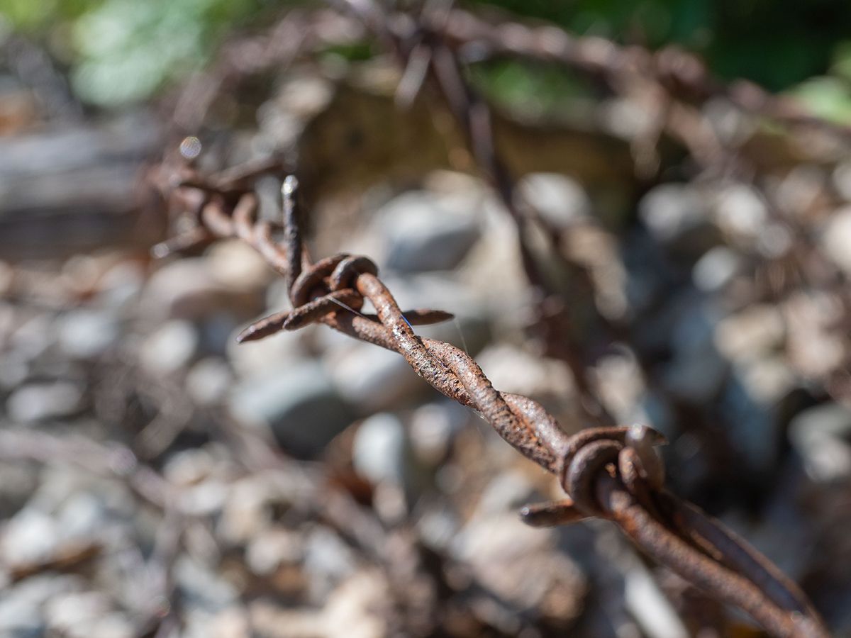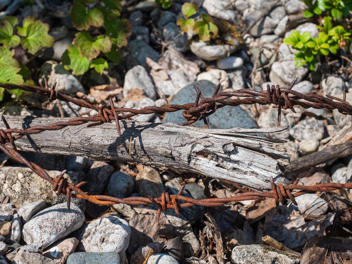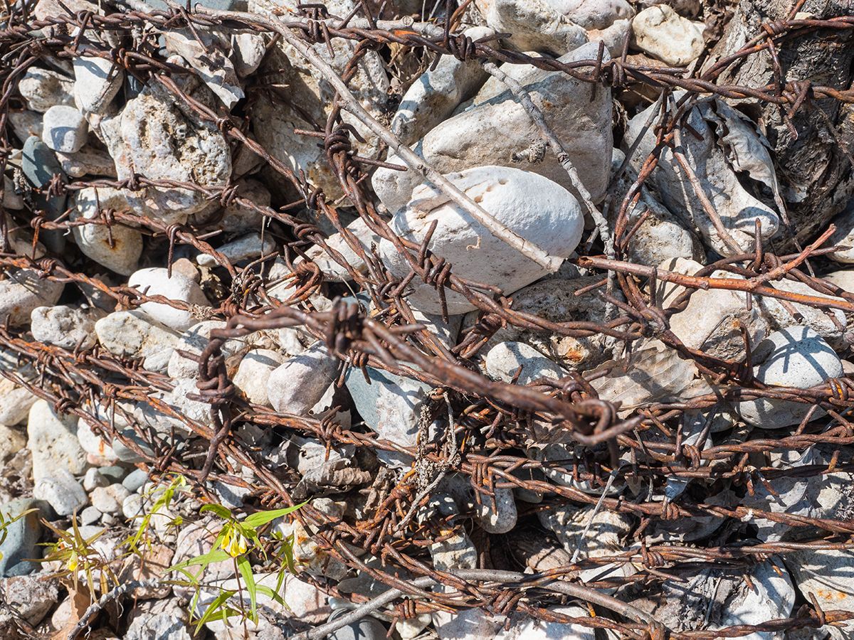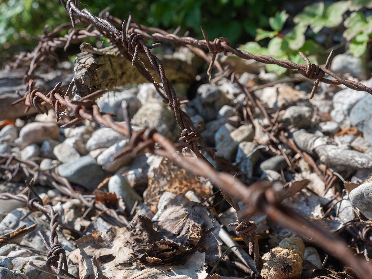 Надо сказать, что колючая проволока была уложена финскими военными основательно – просто так достать ее непросто. Она вросла в землю, и намертво обвила некоторые деревья. Береговая линия 80 лет назад действительно была недоступна человеку. Любой, кто попытался бы преодолеть эту колючку, гарантированно запутался бы, как в паутине.