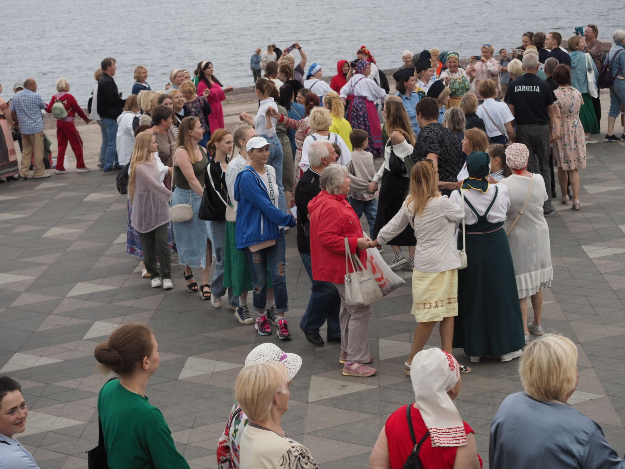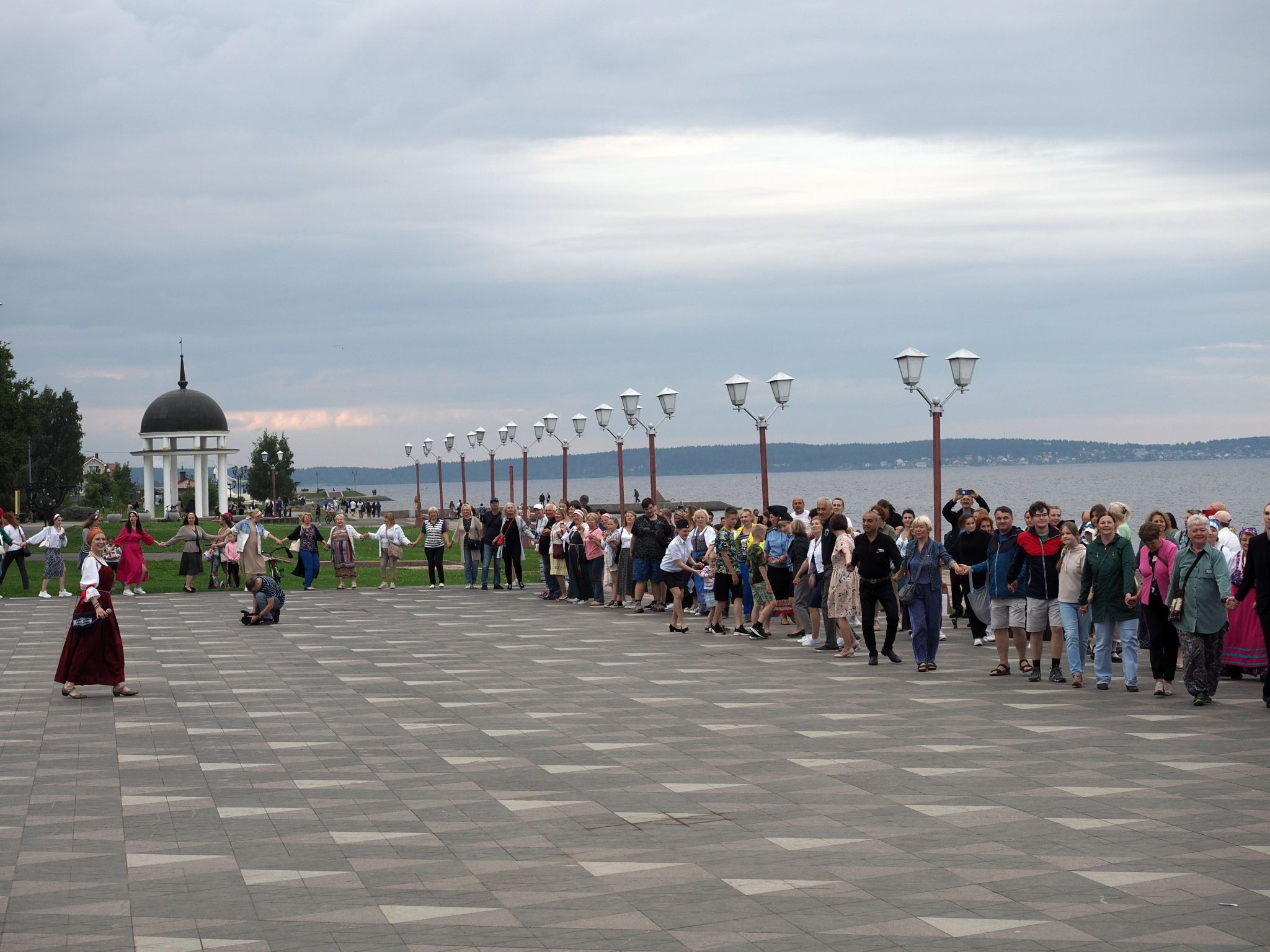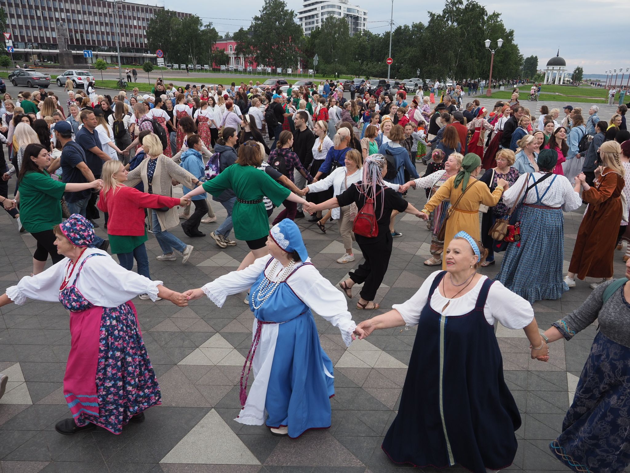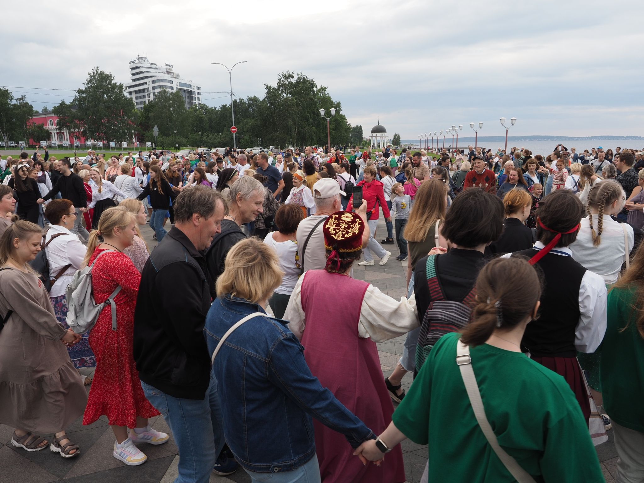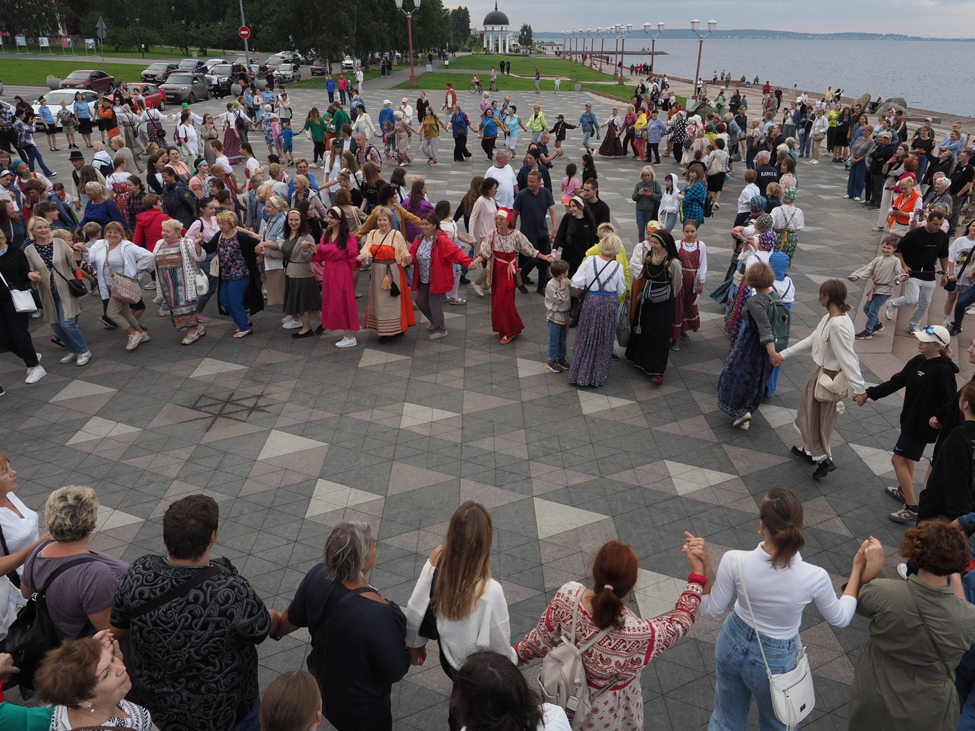 Министерство национальной и региональной политики республики проводит флешмоб «Карельская крууга» с 2019 года. Акция стала ежегодной. В прошлый раз она проходила на площади Кирова, а в этот сменила площадку – петрозаводчане и гости карельской столицы закружились в танце на Онежской набережной.