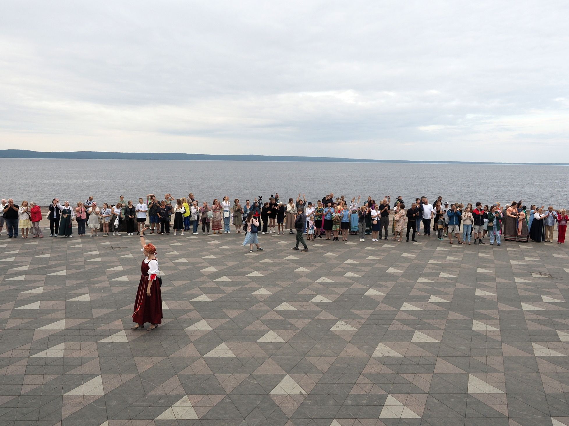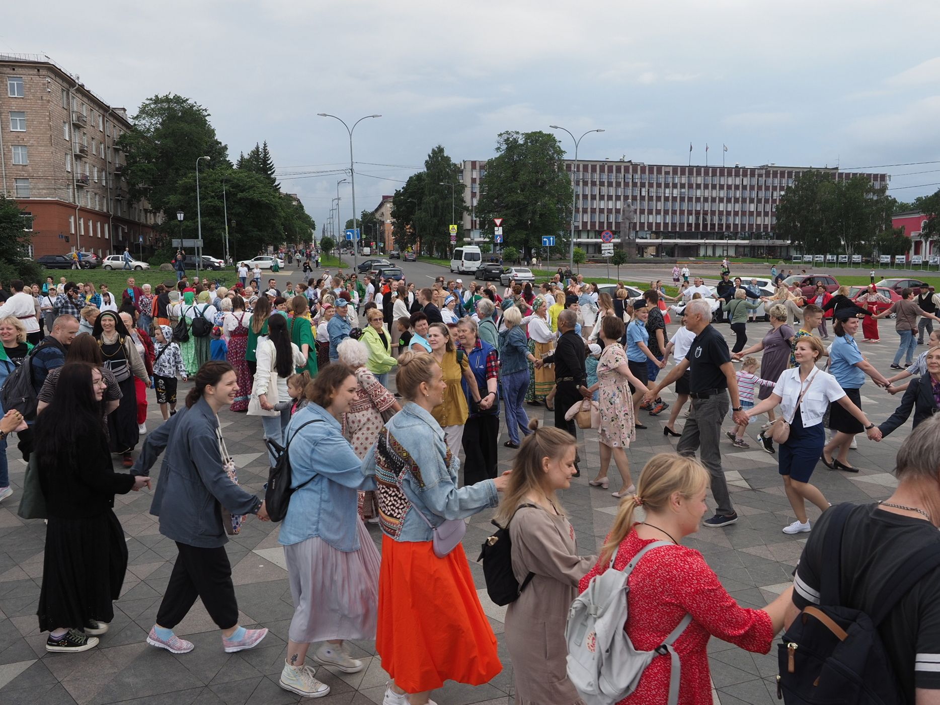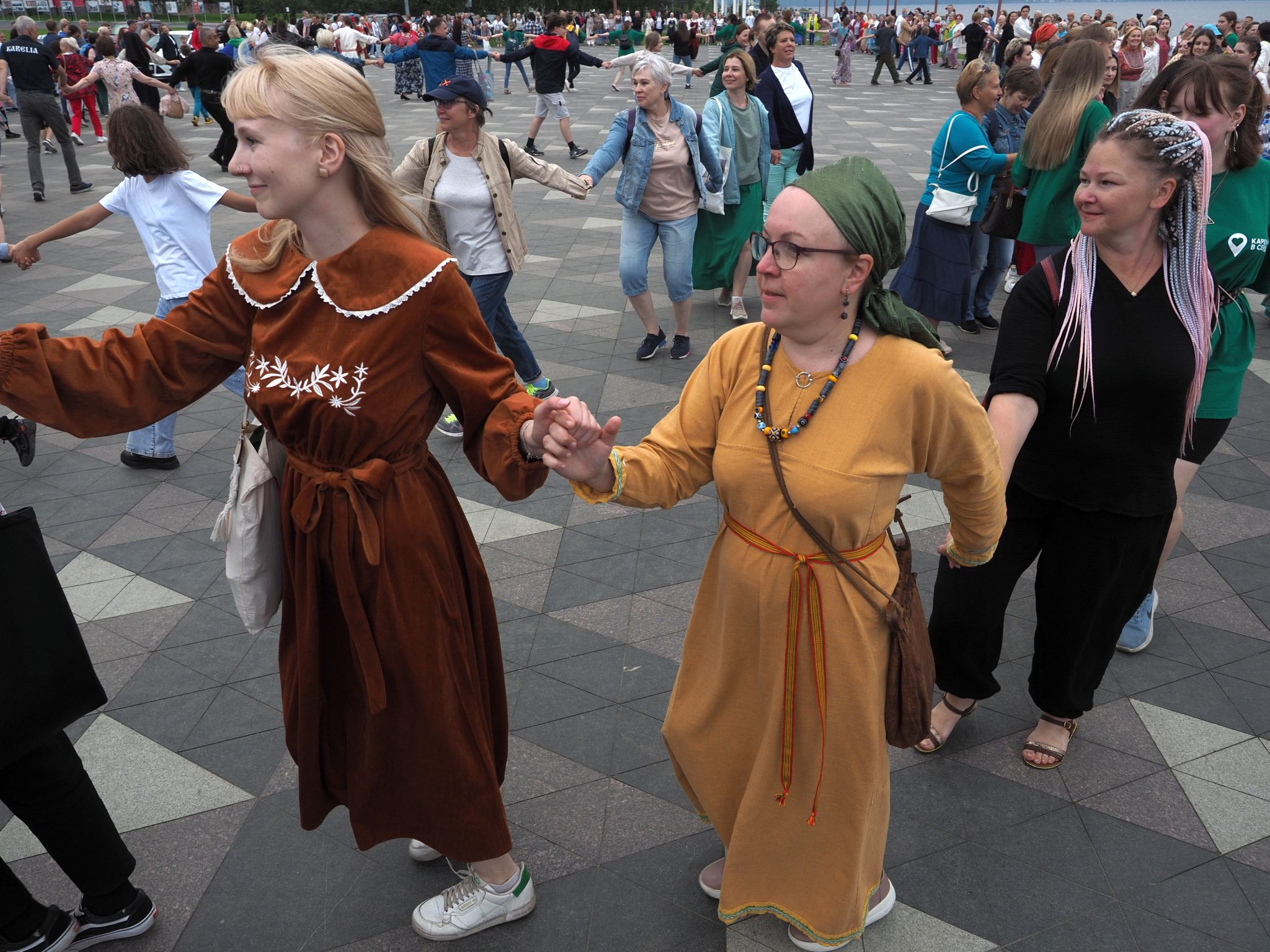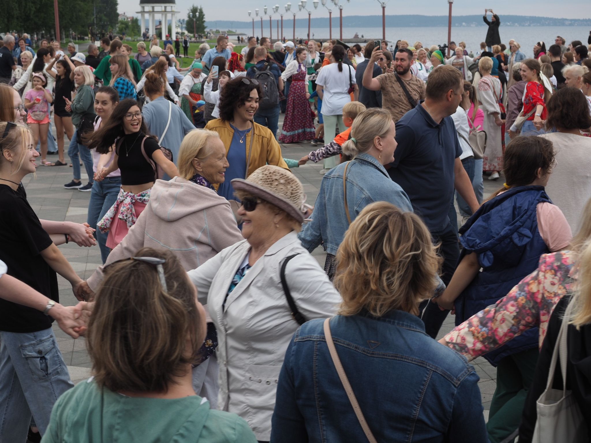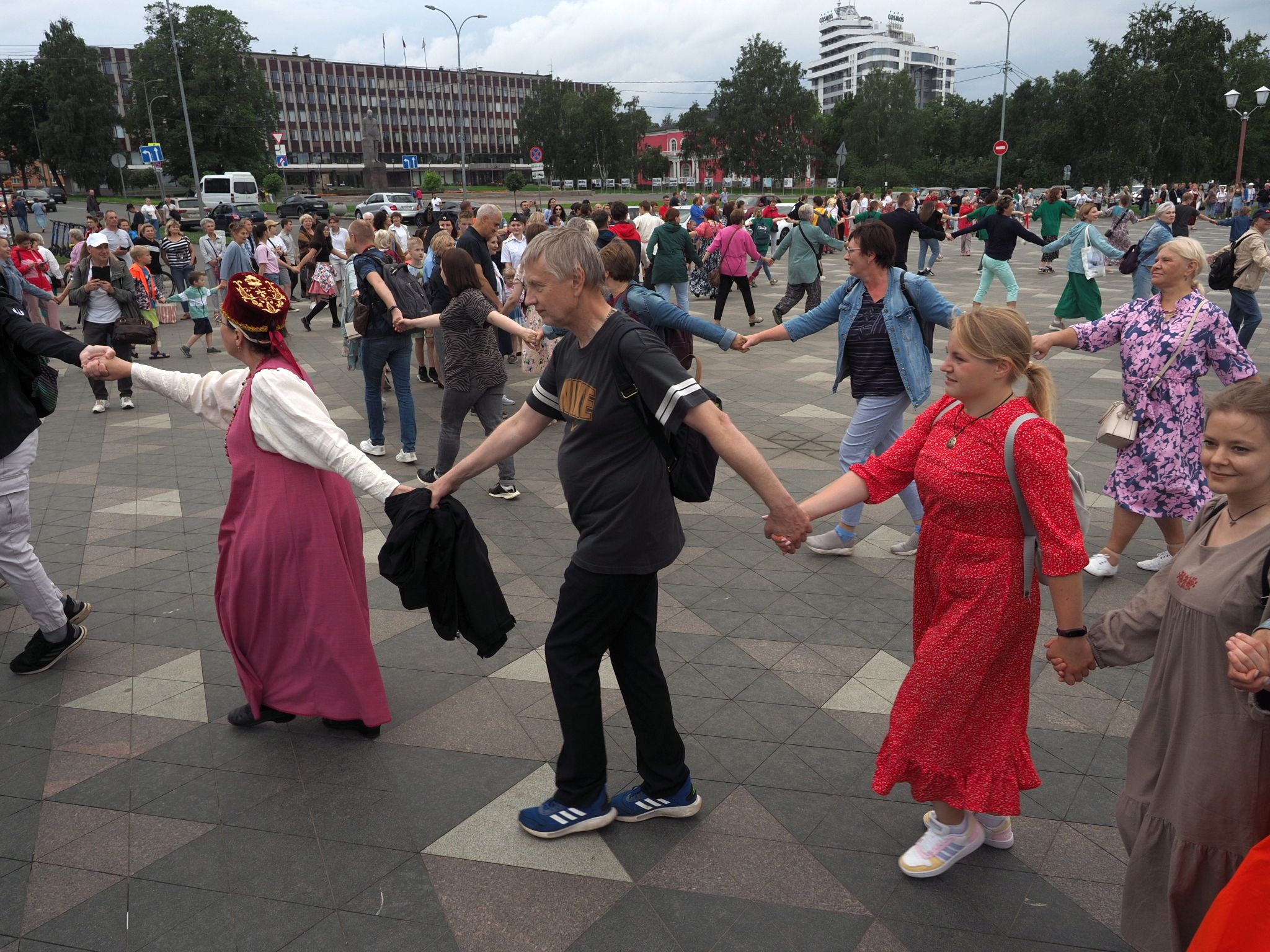 Министерство национальной и региональной политики республики проводит флешмоб «Карельская крууга» с 2019 года. Акция стала ежегодной. В прошлый раз она проходила на площади Кирова, а в этот сменила площадку – петрозаводчане и гости карельской столицы закружились в танце на Онежской набережной.