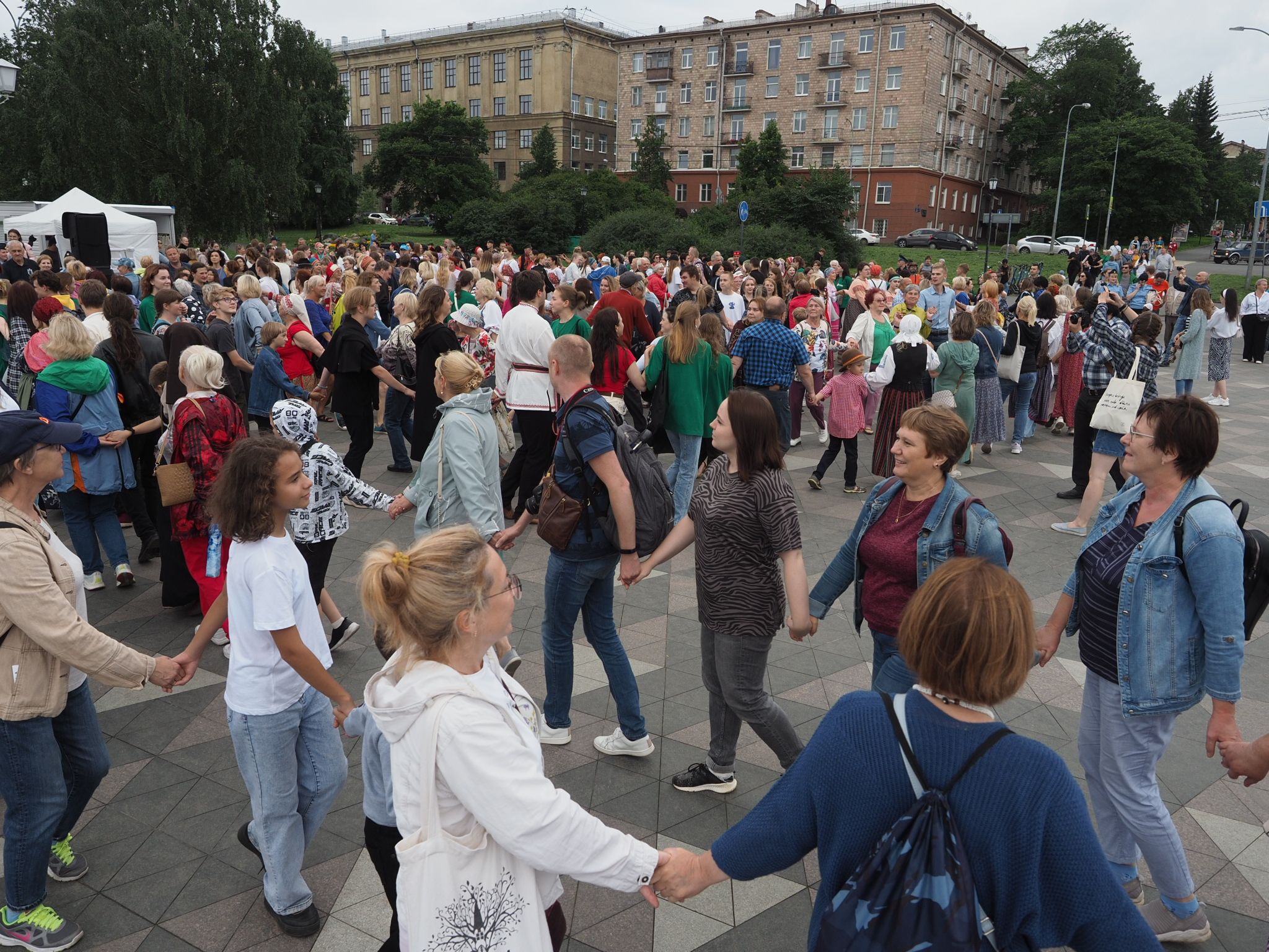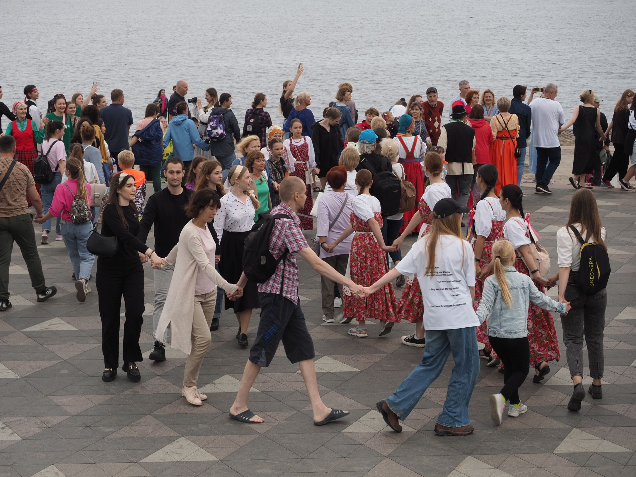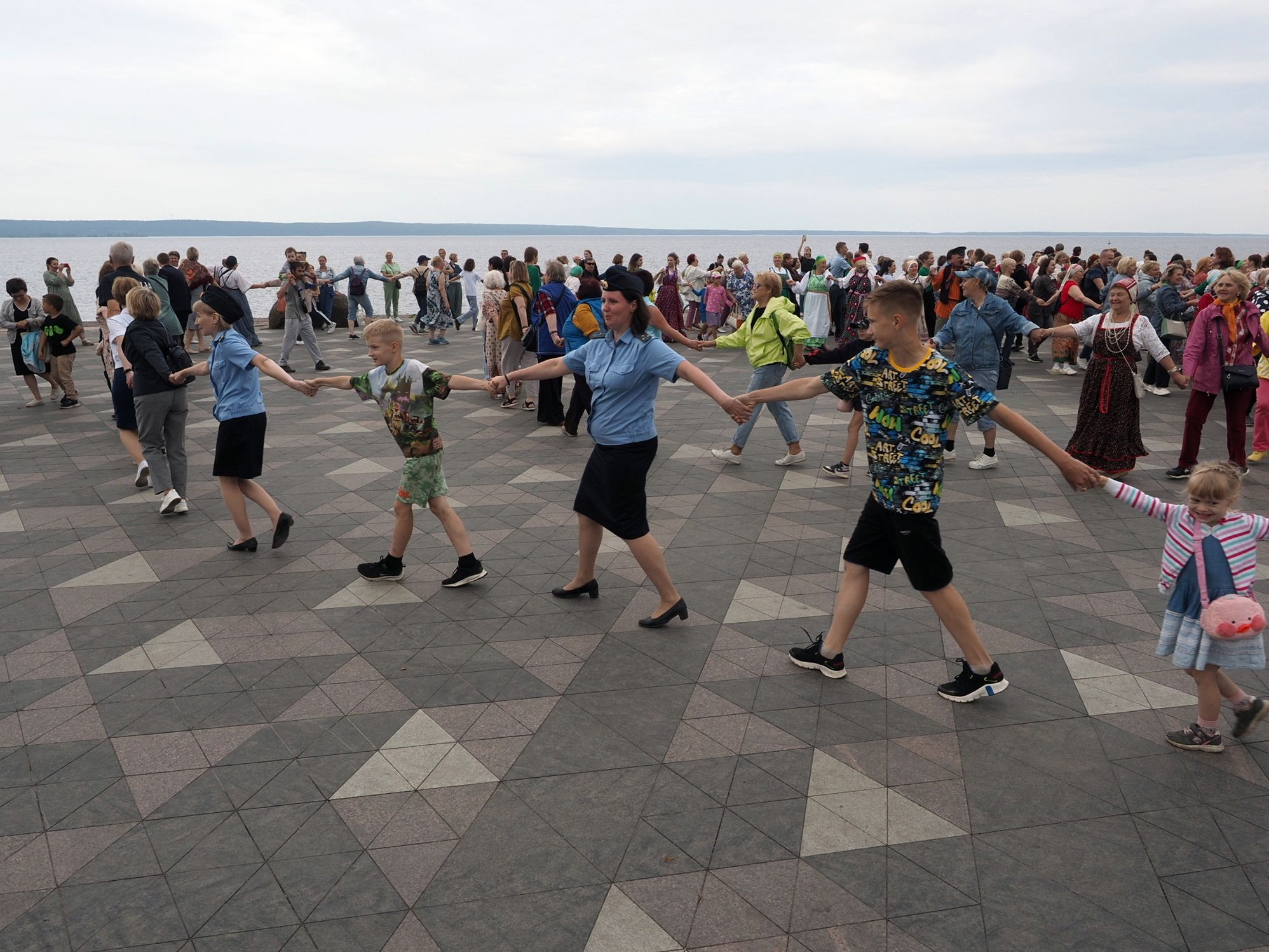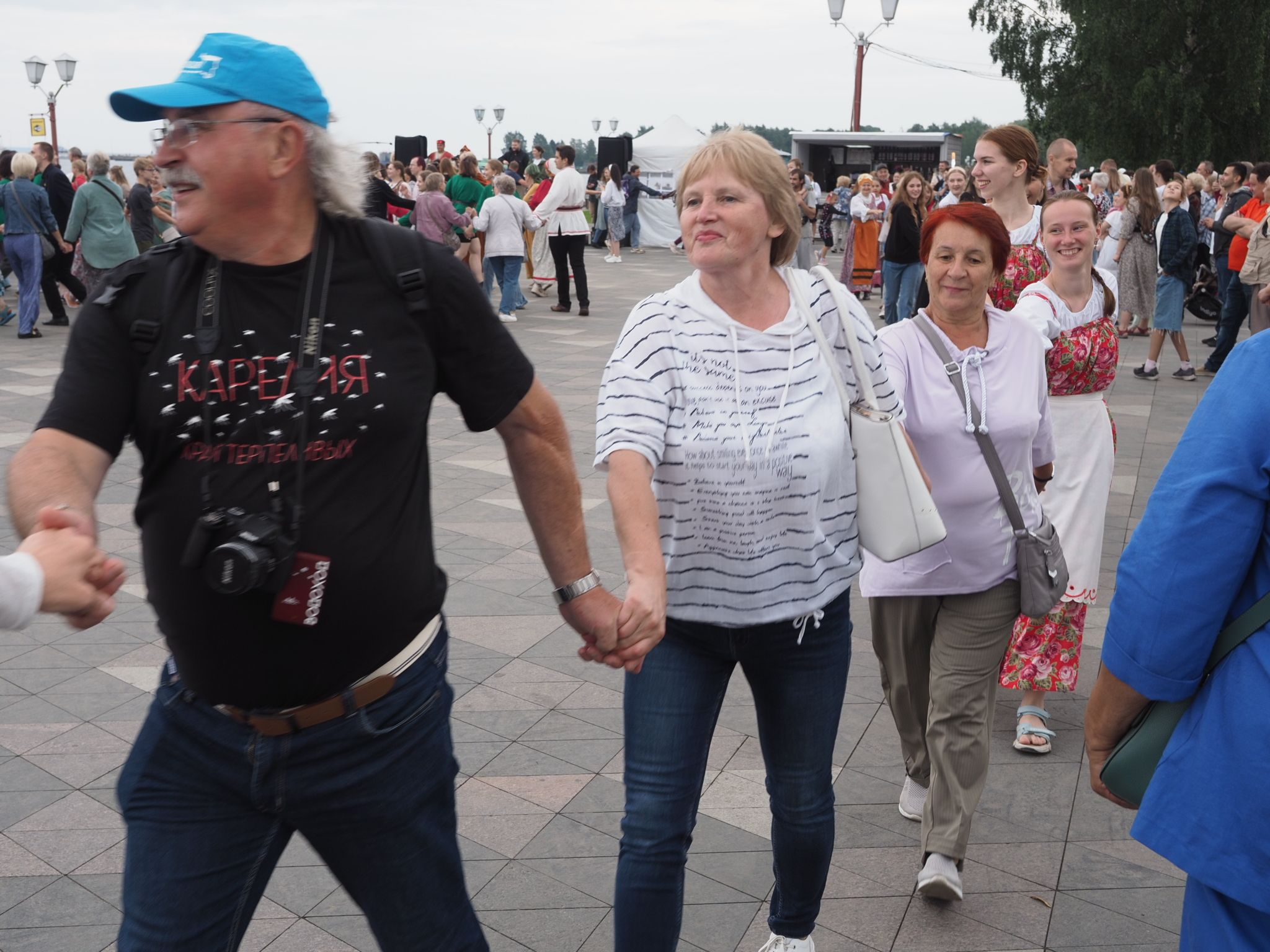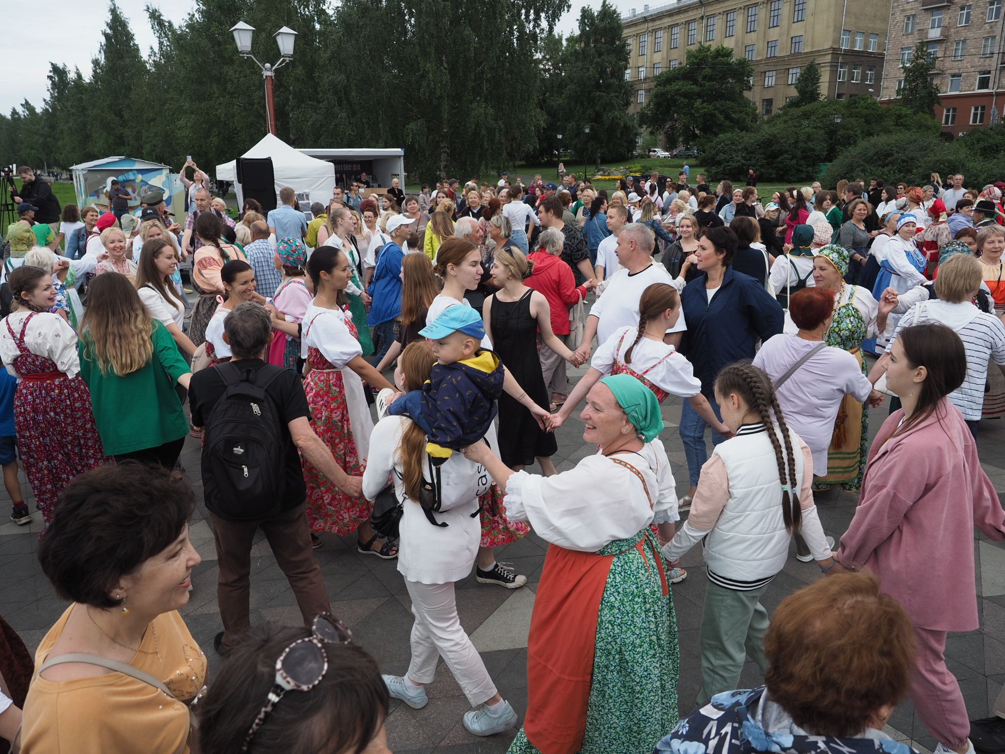 Министерство национальной и региональной политики республики проводит флешмоб «Карельская крууга» с 2019 года. Акция стала ежегодной. В прошлый раз она проходила на площади Кирова, а в этот сменила площадку – петрозаводчане и гости карельской столицы закружились в танце на Онежской набережной.