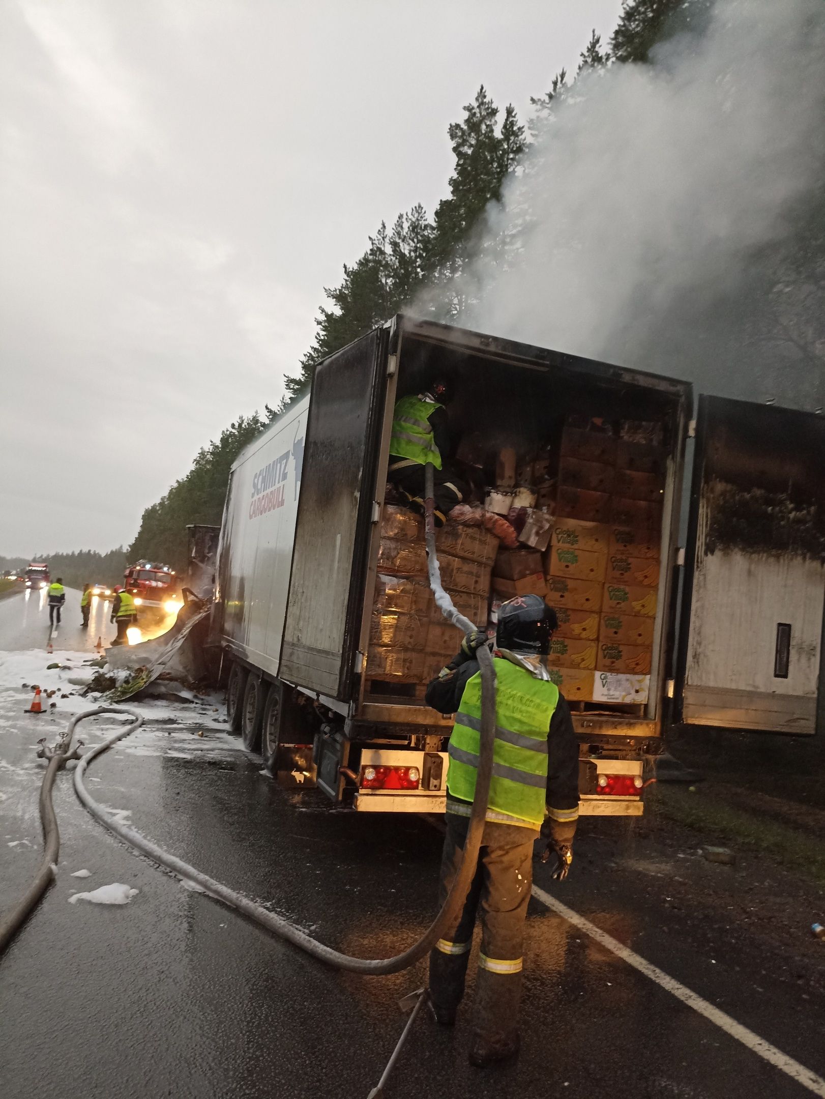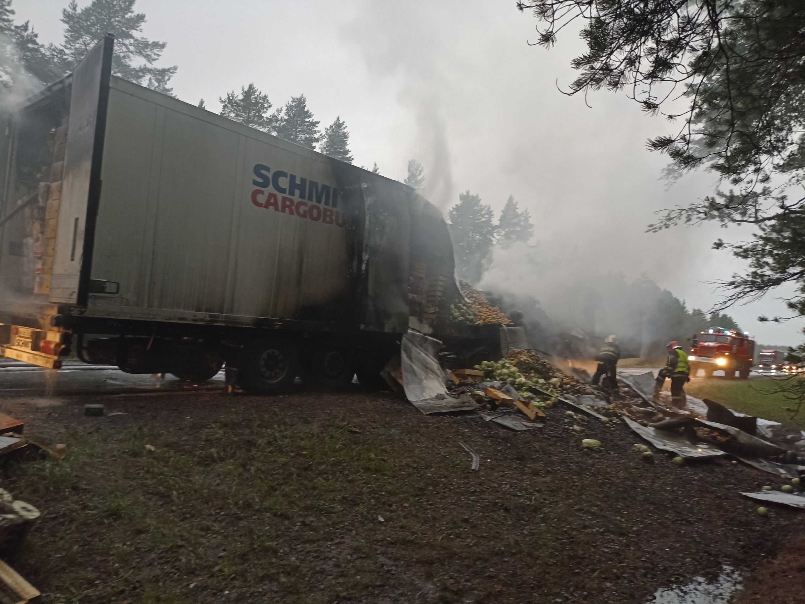 Большегруз с фруктами и арбузами загорелся на трассе «Кола».