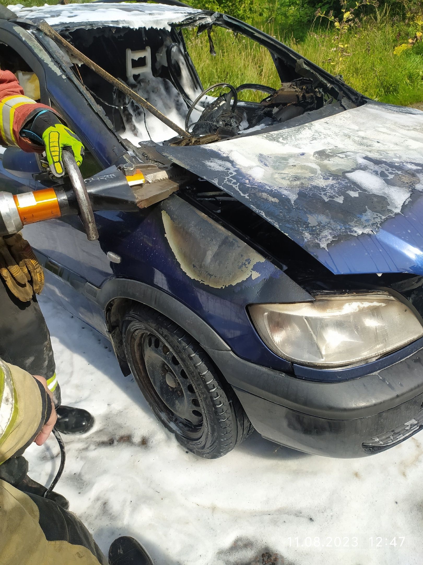 Использовалась пена для тушения, механизированным инструментом вскрыли капот автомашины.