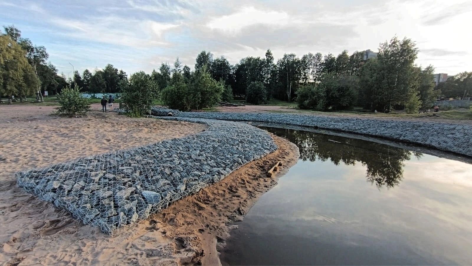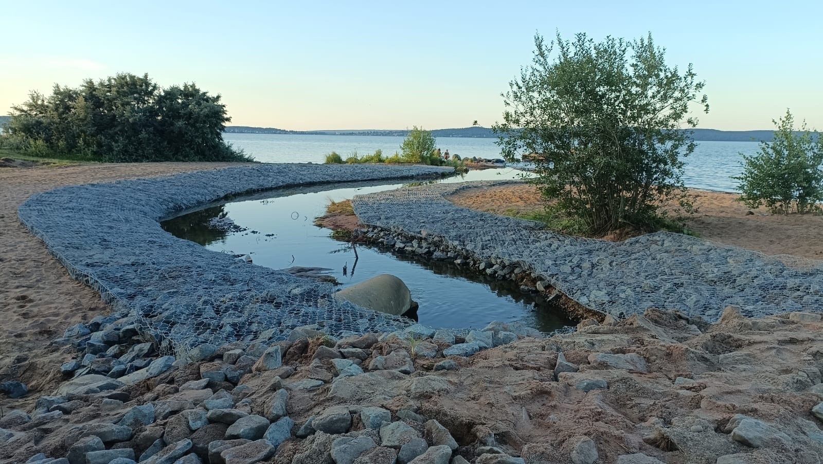 Специалисты организовали систему сигнализации уровня песка и нефтепродуктов, отремонтировали береговой выпуск, благоустроили русло и укрепили его откосы габионами.