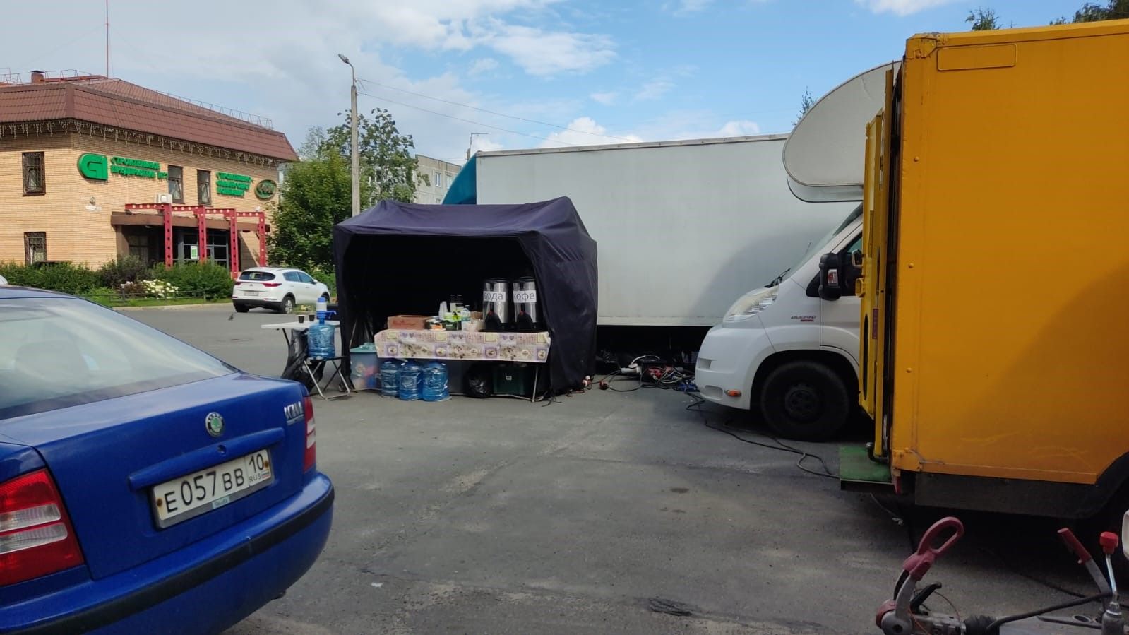Автобусы подъехали, генератор стоит, ларек поставили с водой для себя. Съемка идет в подъезде дома, — рассказал читатель нашего портала.