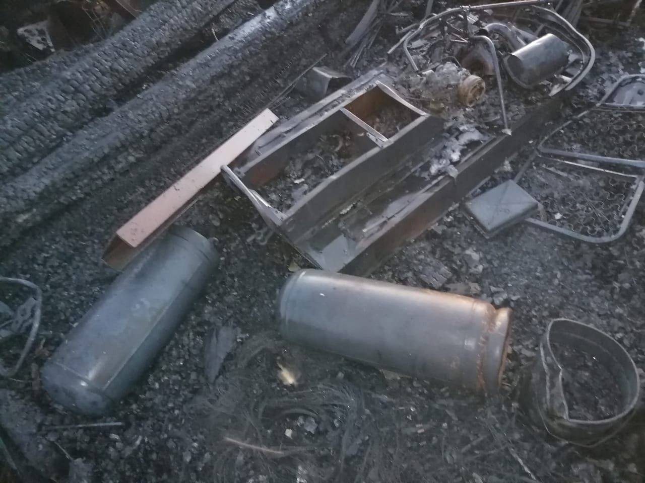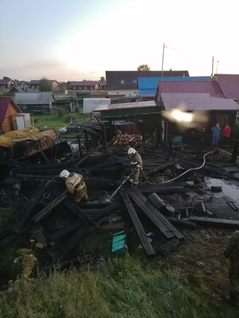 В очаге пожара находились газовые баллоны, что осложняло тушение. От сильного теплового излучения у командира отделения пожарной части из Сумпосада оплавилась каска и бензорез.