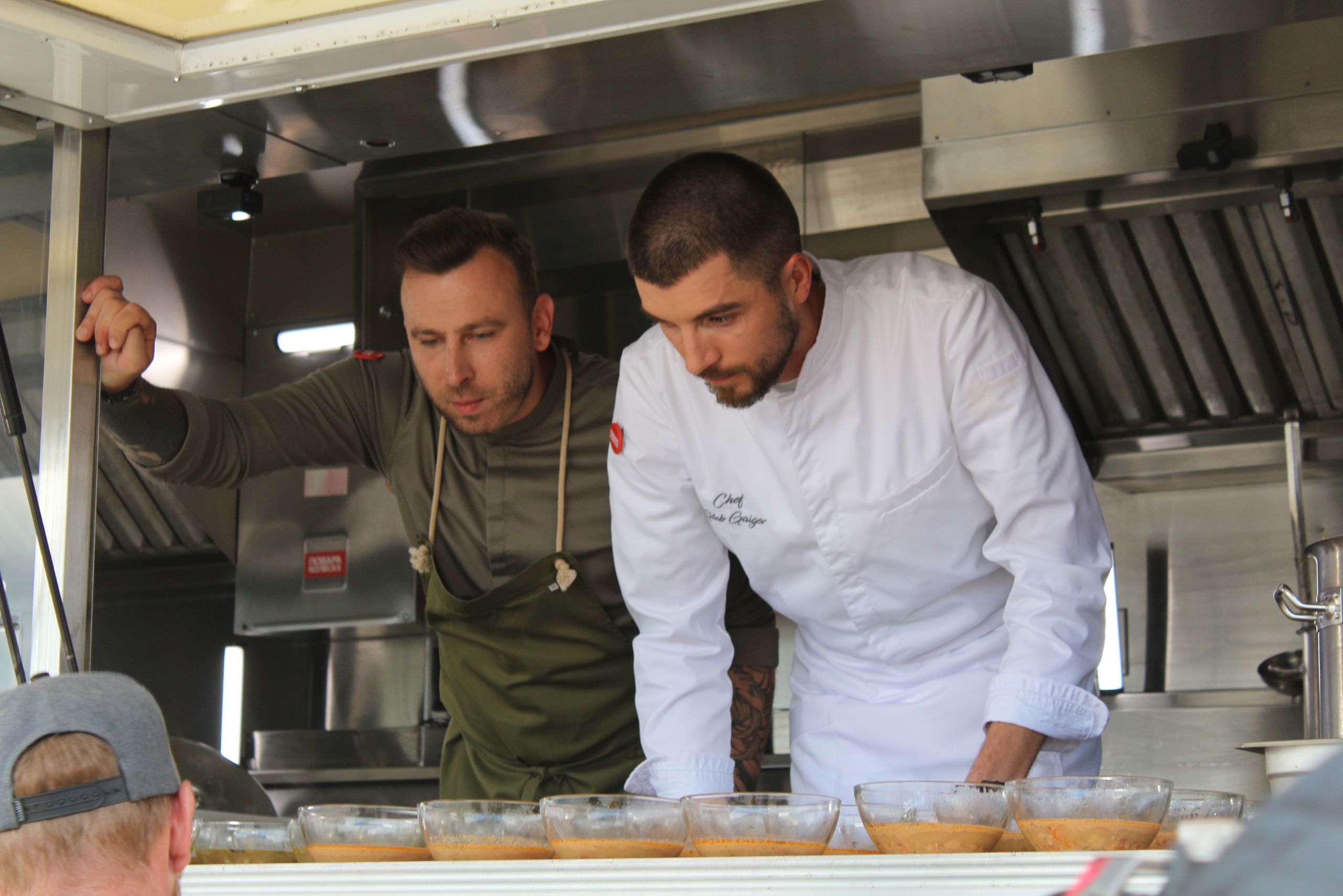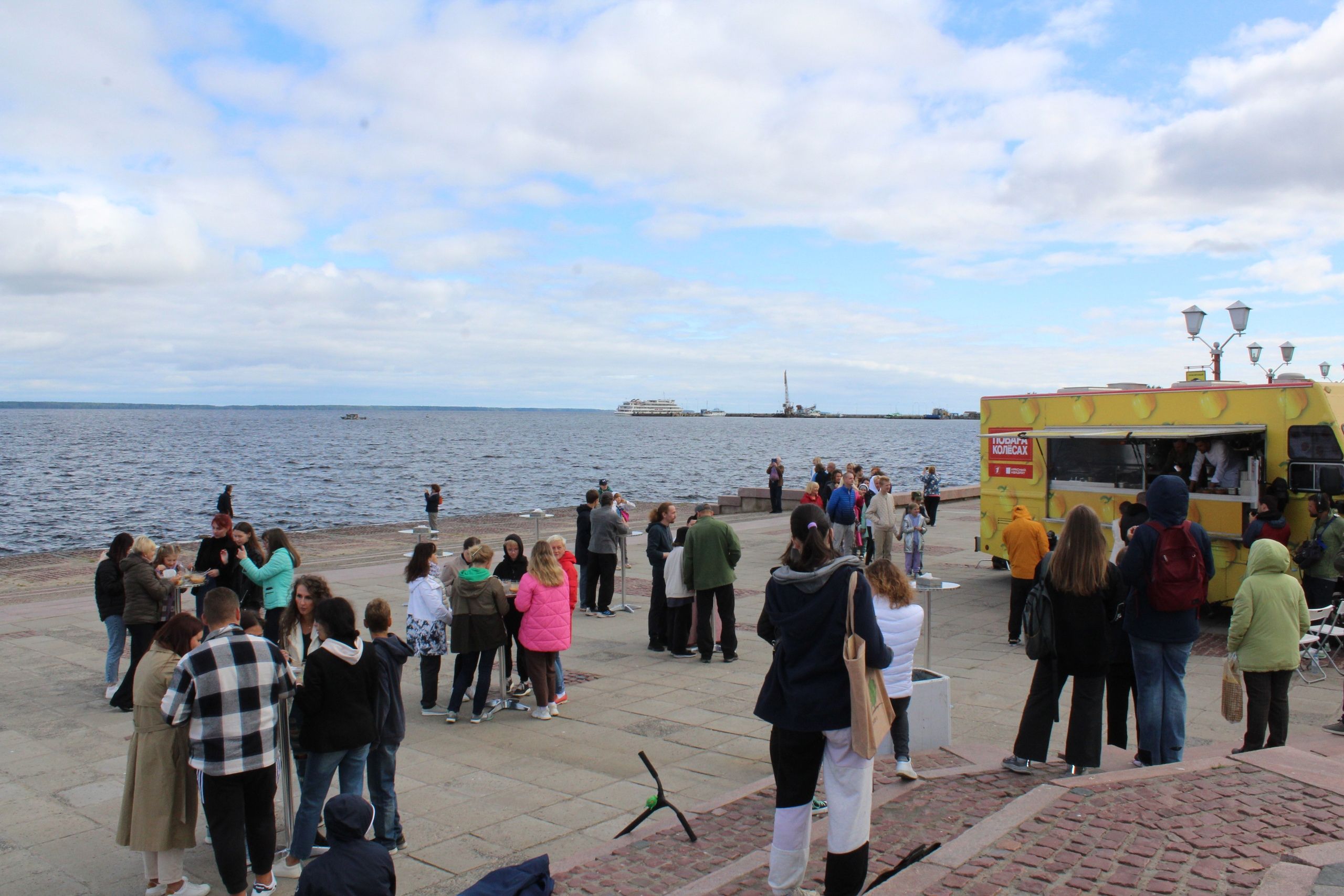 Фудтрак установили в створе проспекта Ленина около Онежской набережной. Шефы Глеб Гайгер и Артем Хижняков приготовили блюда из местных продуктов и поделились ими с горожанами.
