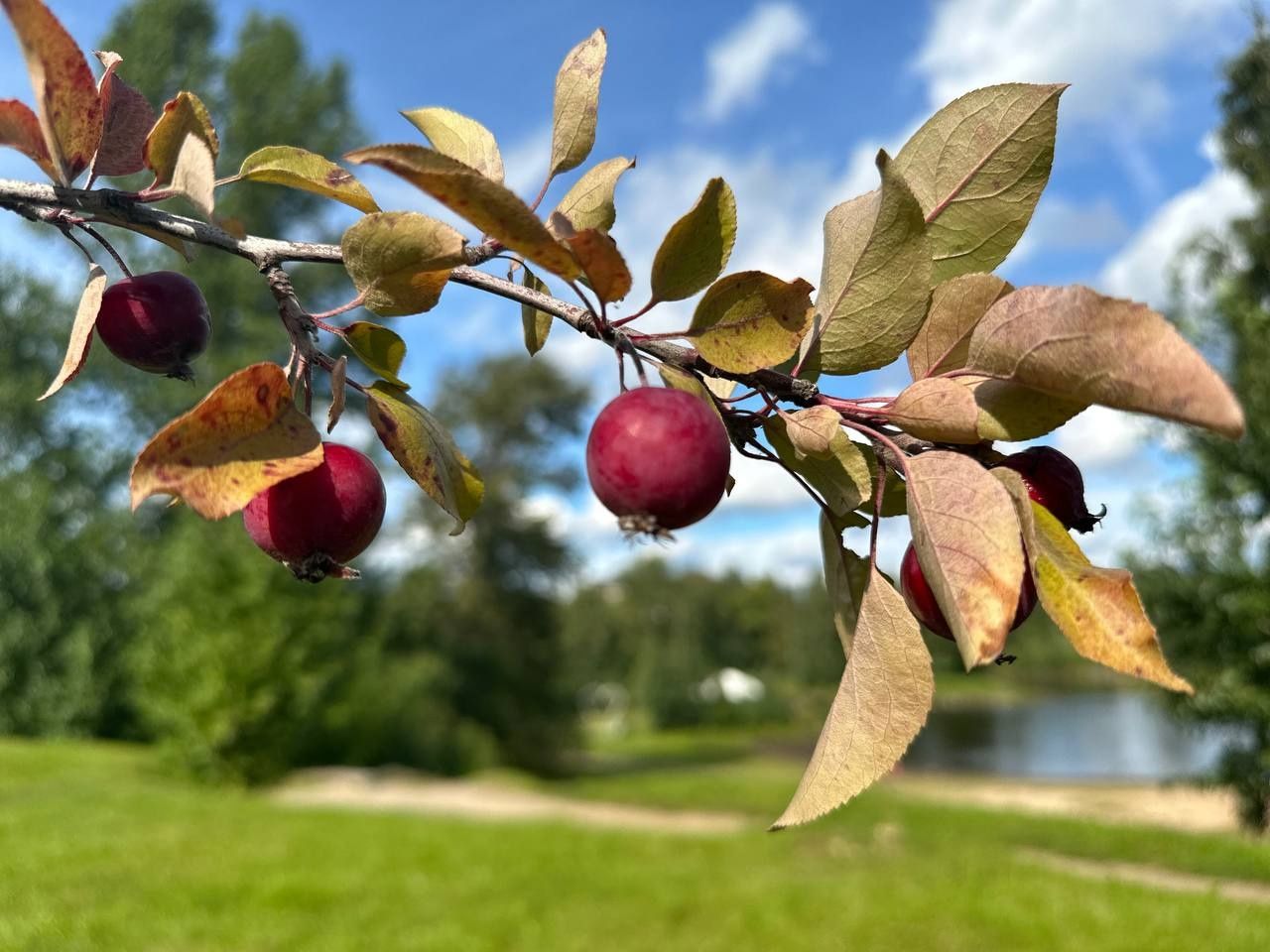 Удивительное дело – молодые яблони, которые были высажены только в июне в Петрозаводске, принесли плоды. Сад появился 25 июня этого года на улице Правды в пойме Лососинки, напротив ЦСК. Сад – подарок жене на день рождения от известного поисковика и общественника Алексея Глушкова. Именно такая мечта была у его супруги Анны Глушковой.