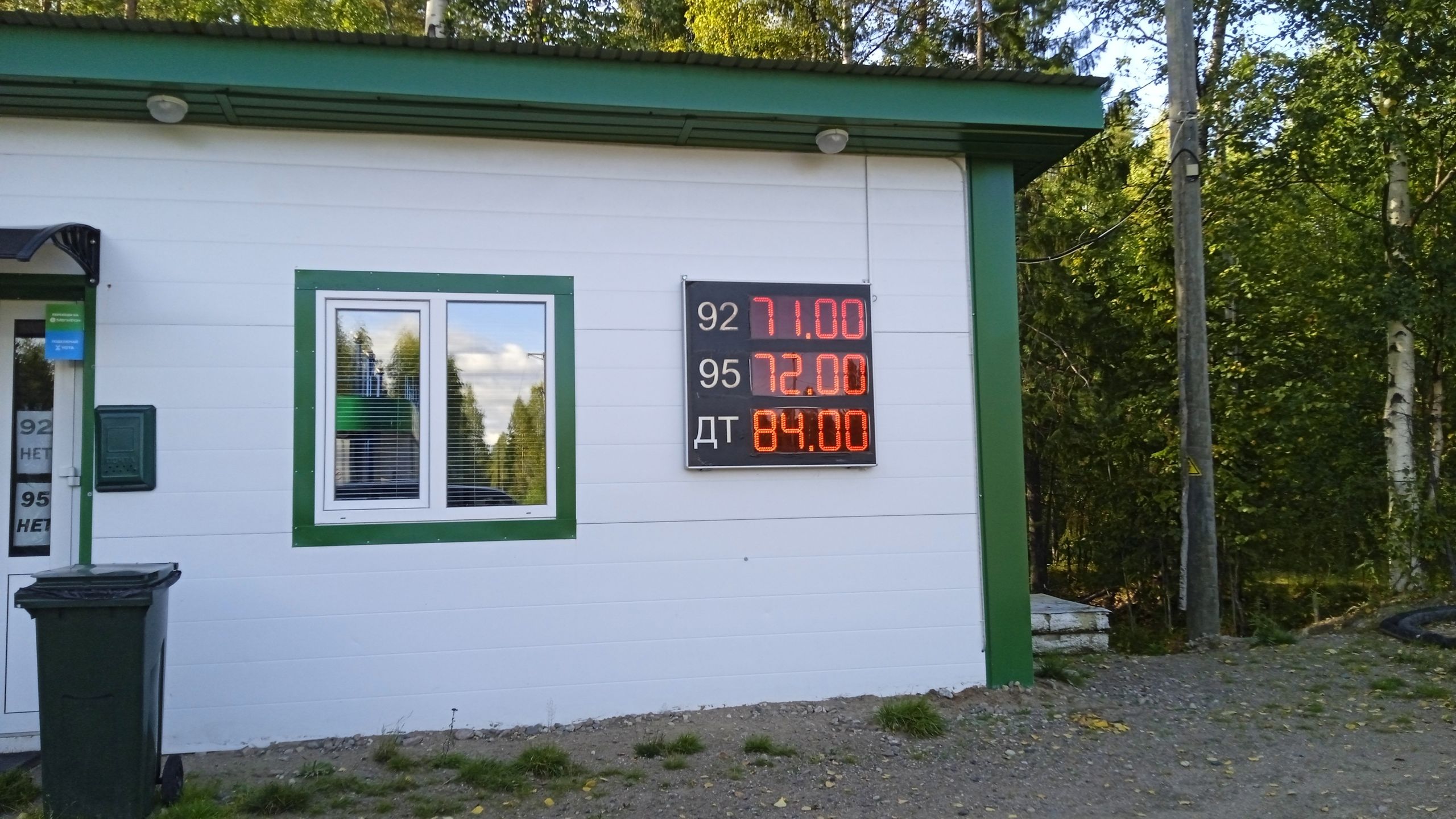 В ночь с 4 на 5 сентября в поселке Пяозерский цена на бензин взлетела на 4.5 рубля. Об этом нашему порталу рассказал местный житель. В редакцию он прислал утреннее фото с заправочной станции.