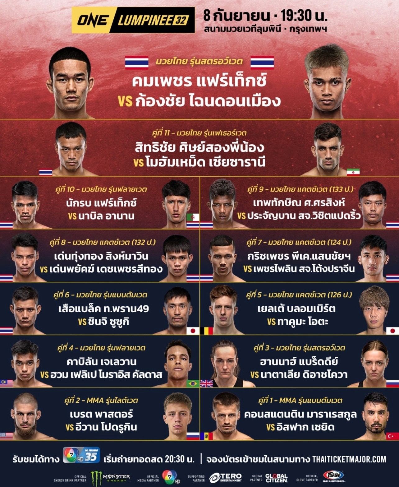 Бой пройдет 8 сентября, начало – в 15:30 по московскому времени. Посмотреть трансляцию боя можно будет на МатчТВ или на канале «One championship live».