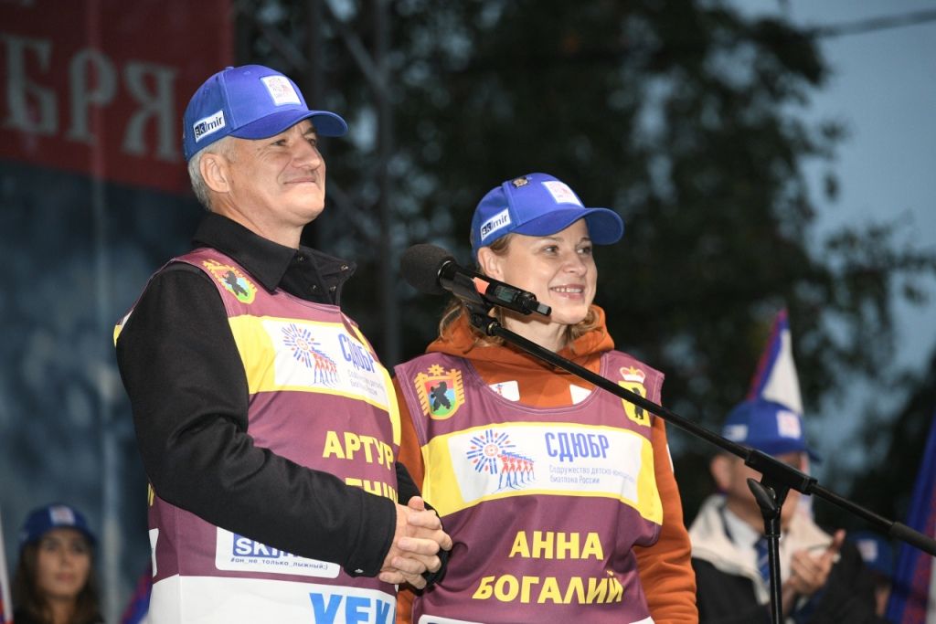 На главной городской площади собрались тренеры, биатлонисты, любители спорта. К спортсменам обратилась двукратная Олимпийская чемпионка, вице-президент Союза биатлонистов РФ по детско-юношескому спорту, Заслуженный мастер спорта России, автор и идейный вдохновитель Кубка Анна Богалий: