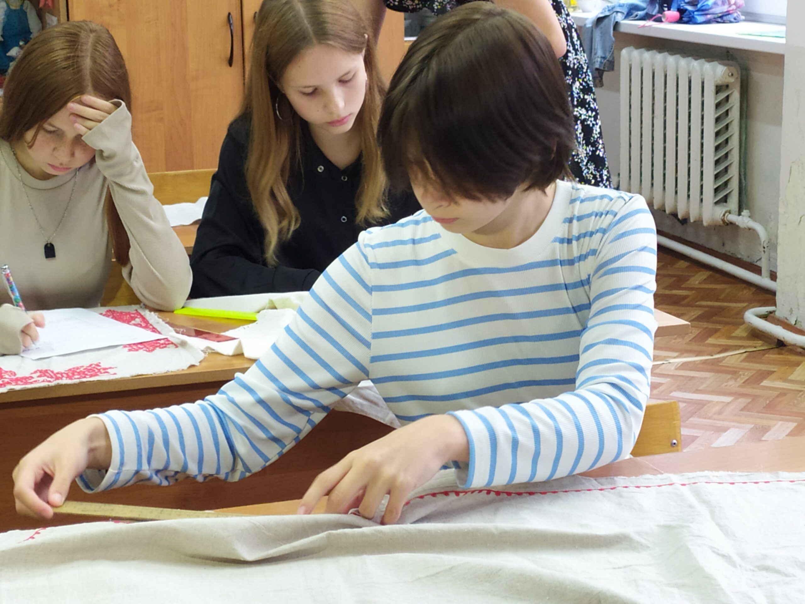 В создании медиапортала помогают не только большие музеи, но и совсем маленькие, школьные. В Шуньге, к примеру, тысяча предметов в собрании, есть немало изделий и с заонежской вышивкой. Школьники вместе с руководителем музея Ольгой Дроновой (на фото в галерее ниже) описывают каждую вещь так, как делают в настоящих музеях – особенности орнамента, состава ткани, состояние сохранности, историю поступления и многое другое. У многих учениц школы – волонтеров проекта – в роду были вышивальщицы, но сами они пробовали вышивать только на уроках труда. Говорят, сложное ремесло, требует усидчивости. Но понимают, что оно уходит в историю, поэтому вместе с учителем они записывают интервью с бывшими мастерицами, расшифровывают их.