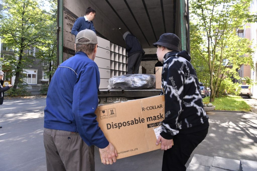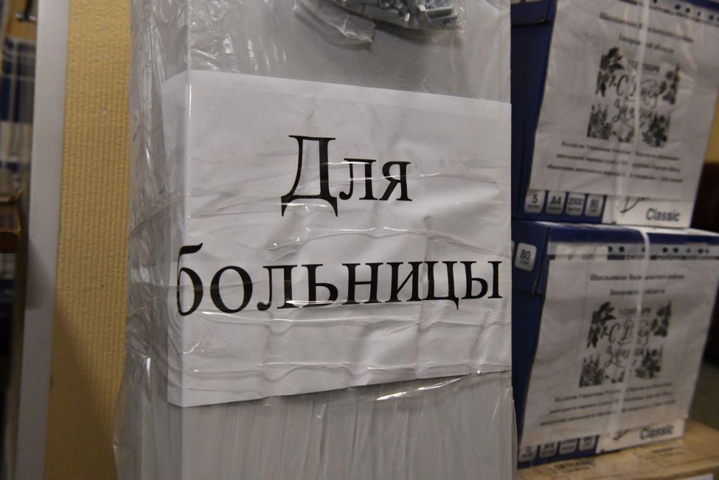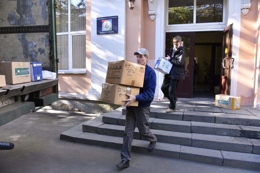 В составе груза – канцелярские и школьные принадлежности в большом количестве, спортинвентарь, одежда для детей, а также стеллажи и медкарты, инвалидные коляски для работы медицинских учреждений. Предприятие «Фрешберри» предоставило морсы и соки.