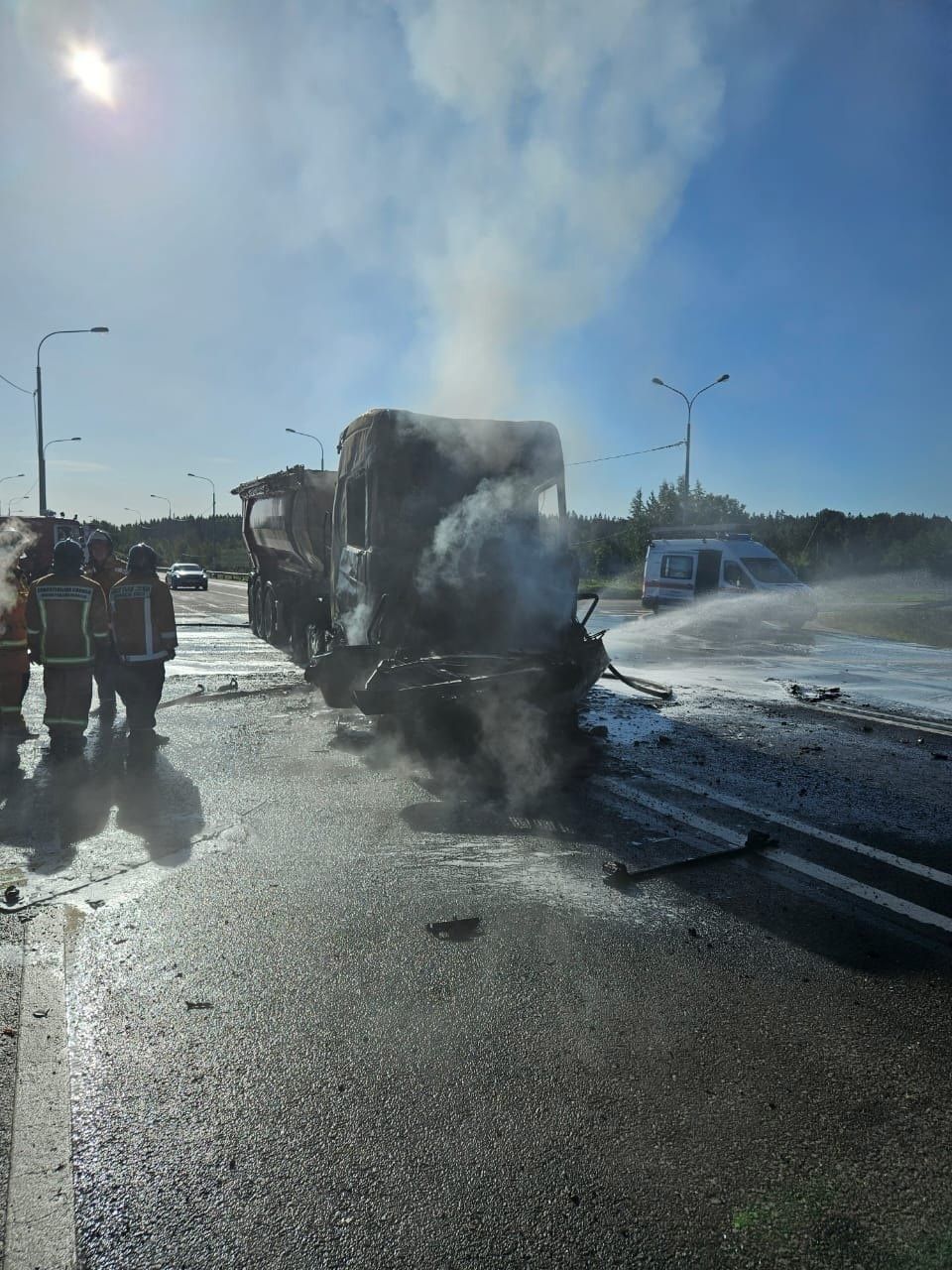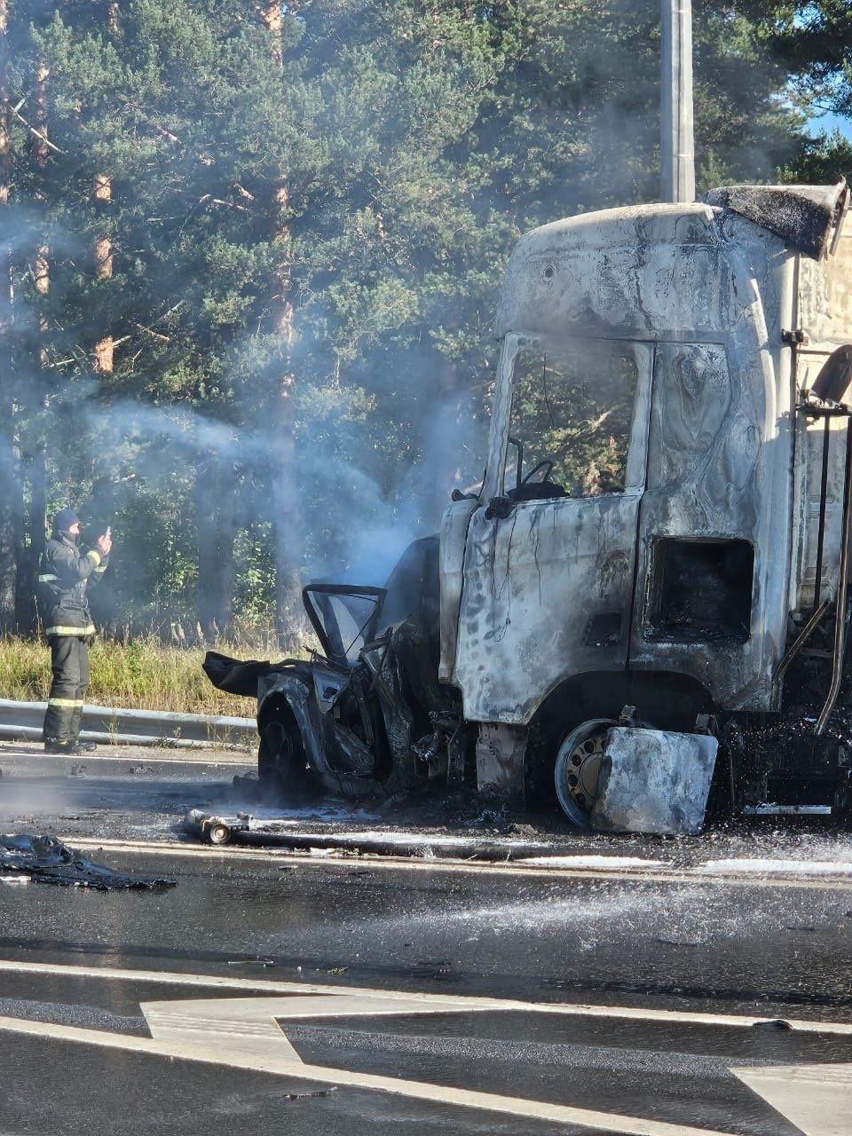 После удара машины загорелись. Прокуратура устанавливает обстоятельства массовой аварии.