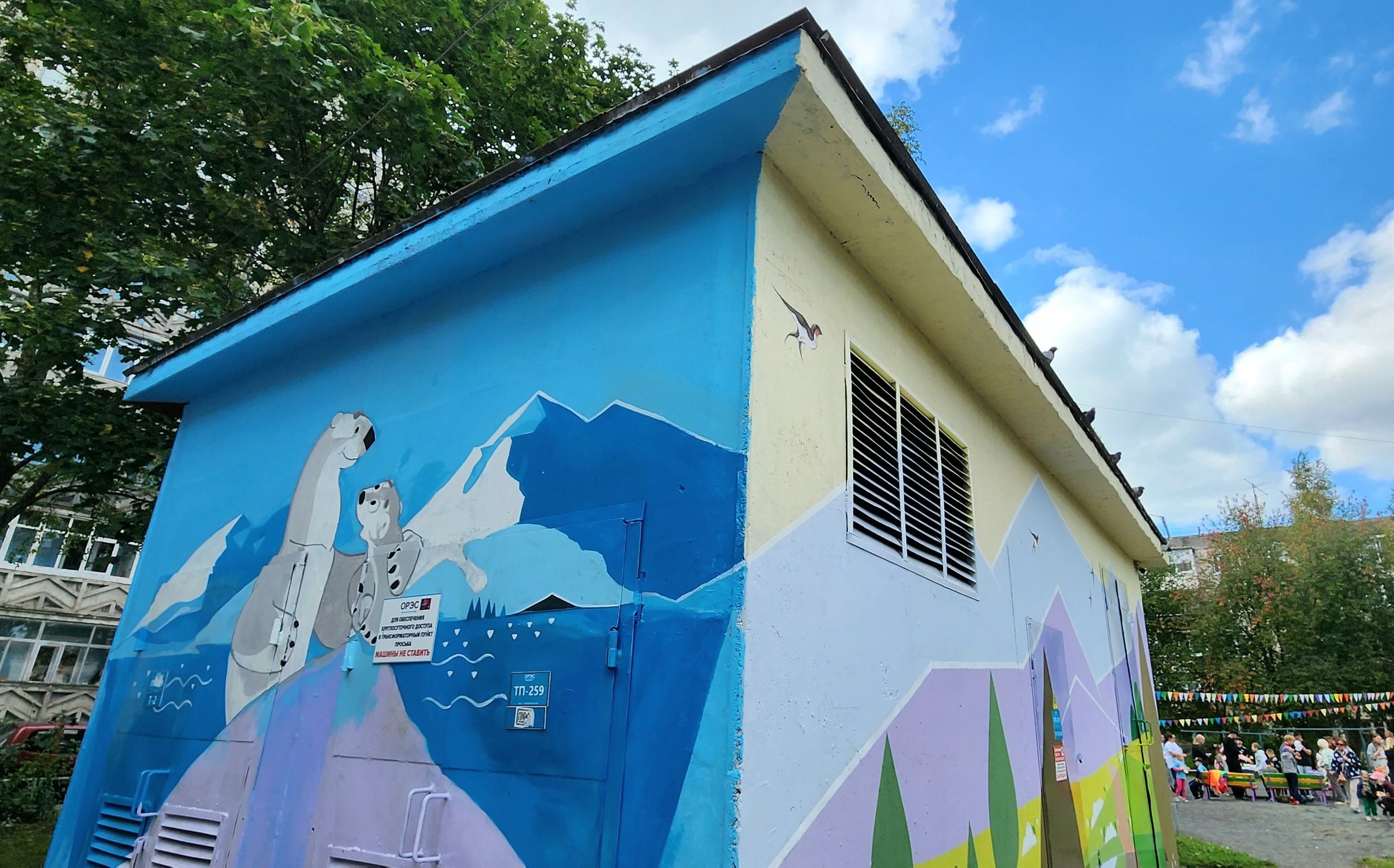 Изображениями известных героев из советских мультфильмов завершается в этом году яркий проект «Граффити» от ОРЭС-Петрозаводск. По желанию активных жителей этого двора Вячеслав Смирнов нарисовал на стенах подстанции Чебурашку, ёжика и Умку.