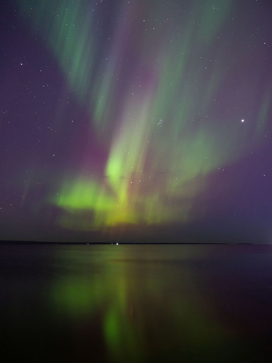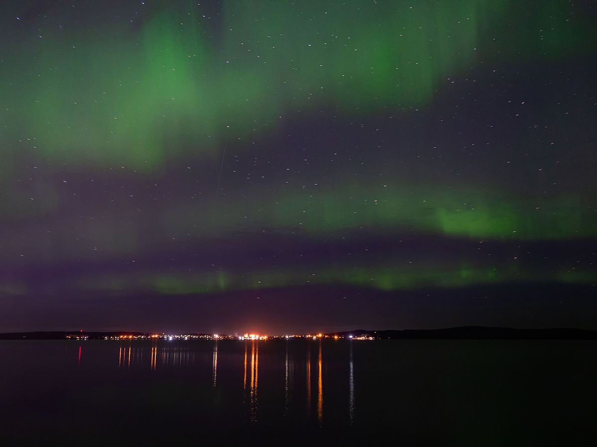 Северное сияние наблюдали в Петрозаводске и Прионежском районе, в Кондопожском и Медвежьегорском районе, в районе острова Кижи. Своими снимками делятся фотографы и любители.