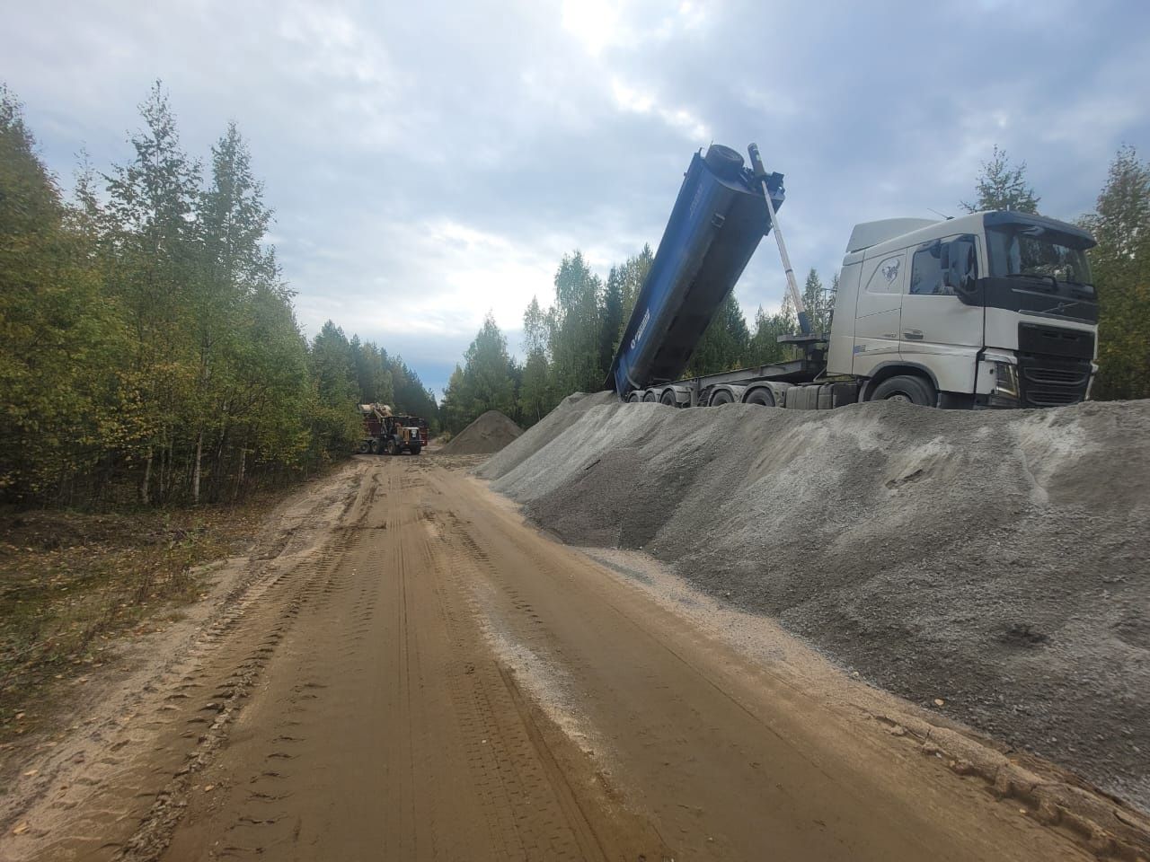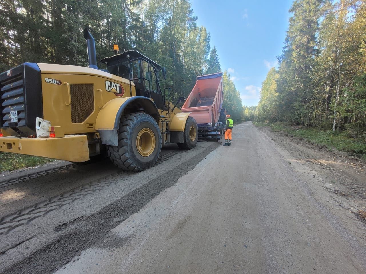 Сейчас дорожники проводят работы по исправлению профиля основания и добавляют щебеночно-песчаную смесь, устраивают кюветы. Специалисты учитывают все особенности дороги – габариты проезжей части, ландшафт, углы и уклоны для стока дождевой и талой воды, что позволит сделать дорожное полотно соответствующим определенной местности.