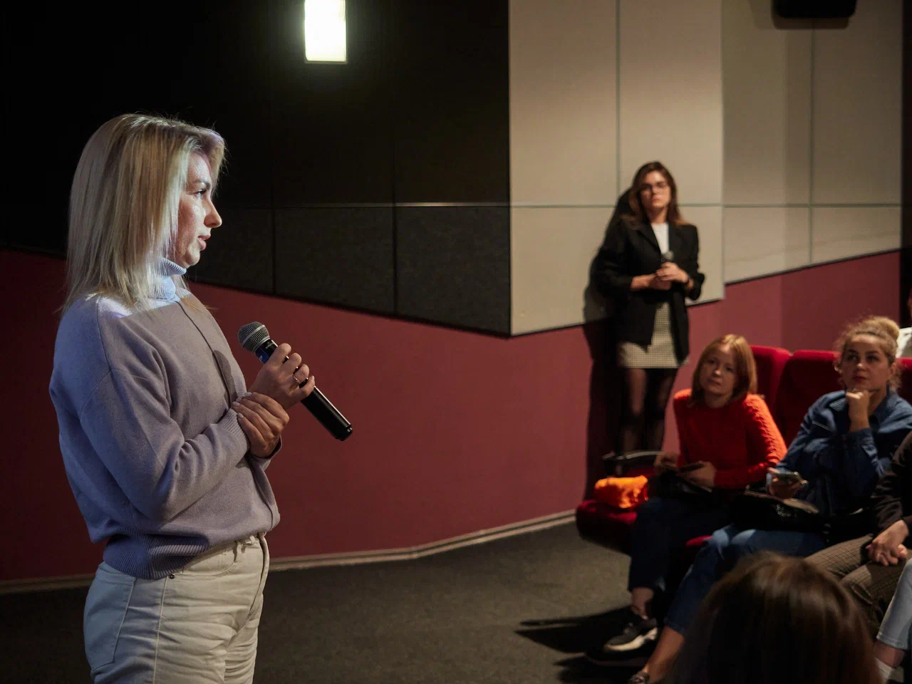 После просмотра состоялся откровенный разговор со сценаристом фильма Алиной Луну. Девушка признается, что работа над сериалом была непростой. Она кавээнщица, а здесь – откровенная драма. Вместе с ней работали Ирина Гурьянова, Оксана Барковская, которые уже писали сценарий для фильма «Новенький» на ту же тему. Их опыт очень помог. Но и Алинин опыт КВН тоже пригодился – шутки разряжают и снимают накал.