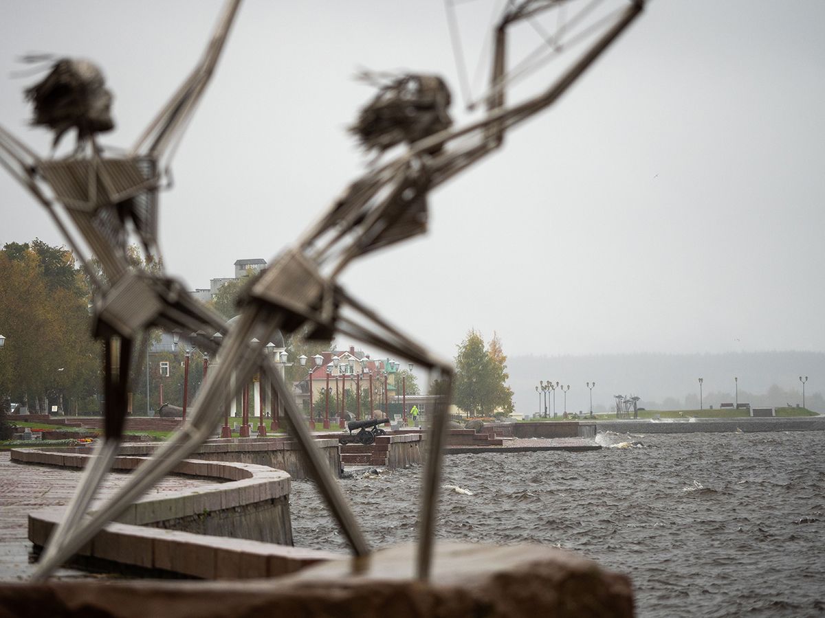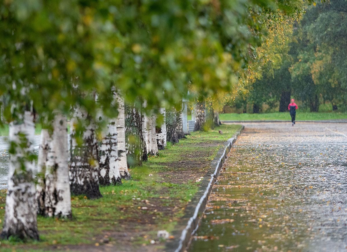 Набережная пустынна, на тренажёрах один человек. Туристические перспективы налицо: можно организовать маршрут «Лужи Петрозаводска». Промок до нитки, — поделился Игорь Подгорный.
