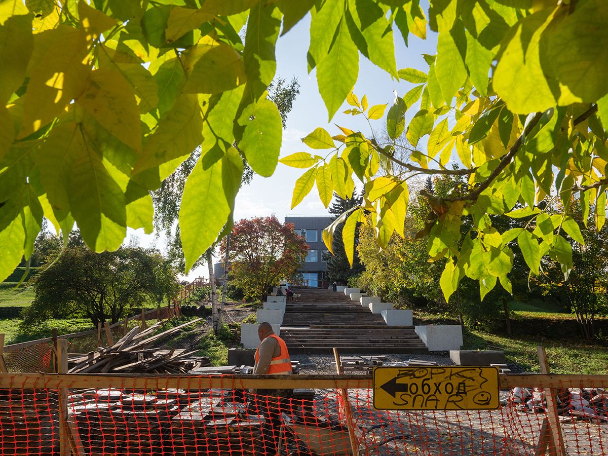 В Петрозаводске завершается ремонт лестничного спуска в парке Железнодорожников. Состояние лестницы давно уже было неудовлетворительное, а ведет она к соцобъектам — МФЦ и Росреестру.