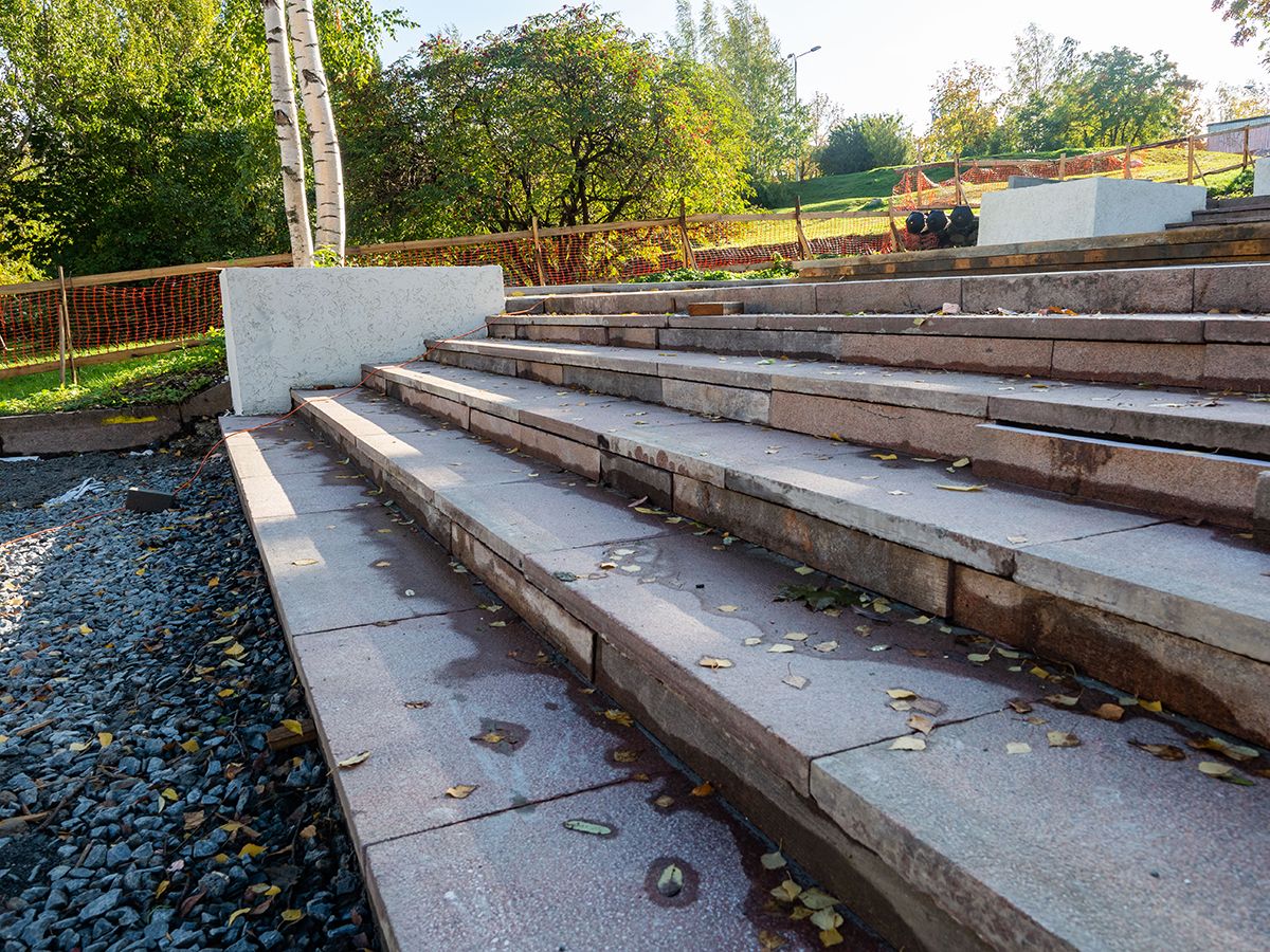 Подрядчик ООО «Свой дом» демонтировал старое покрытие. После этого он замостил промежуточные площадки спуска бетонной брусчаткой и установил гранитные термообработанные ступени. В ближайшее время на объекте модернизируют шесть опор освещения и покрасят поверхности подпорных стенок, — рассказали в мэрии.