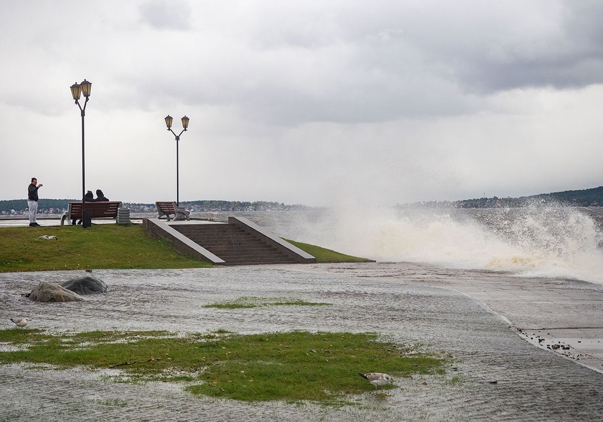 Недавно Подгорный фотографировал ливень, теперь в его объектив попал шторм. Фотограф подготовил большой фоторепортаж для портала «Карелия.Ньюс»