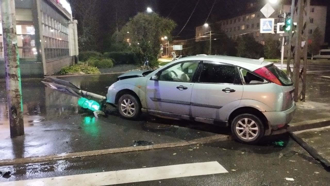 ДТП произошло вчера, 7 октября, в 19:46, на пересечении Октябрьского проспекта и улицы Ленинградской. Лихой маневр водителя, уходившего от погони, не удался. Машина на большой скорости врезалась в светофор и дорожный знак на пешеходном переходе.