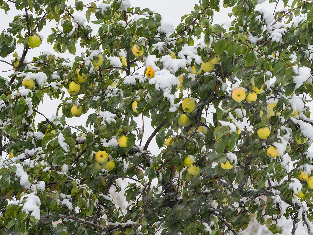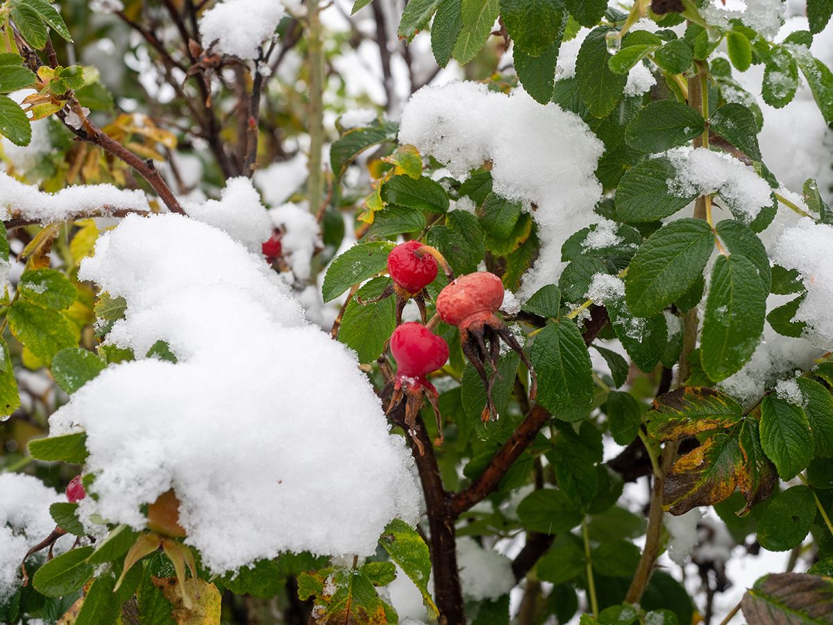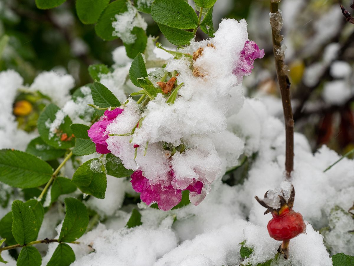 На снимках – цветущий шиповник, зеленая растительность, яблоня с еще не опавшими яблоками, и все это под покровом снега. Сразу и не поймешь, в какое время года сделаны снимки. Воистину карельская погода не перестает удивлять.