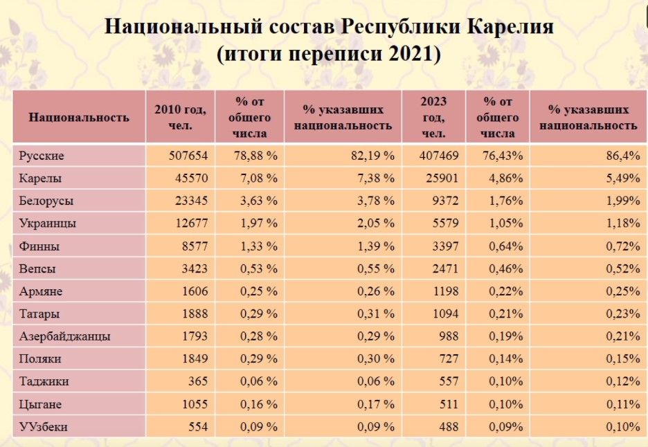 Она рассказала, сколько татар проживает в Карелии, а также – как формировалась татарская община в нашей республике. С ее слов, сейчас татары вторая по численности нация в России. По данным переписи 2021 года, в России проживает более 4,7 млн тарар. В Карелии цифры куда скромнее. По данным на 2021 год – всего 1094 человека, которые причисляют себя к этой нации. Тогда как в 2010 году татар в Карелии было 1888.