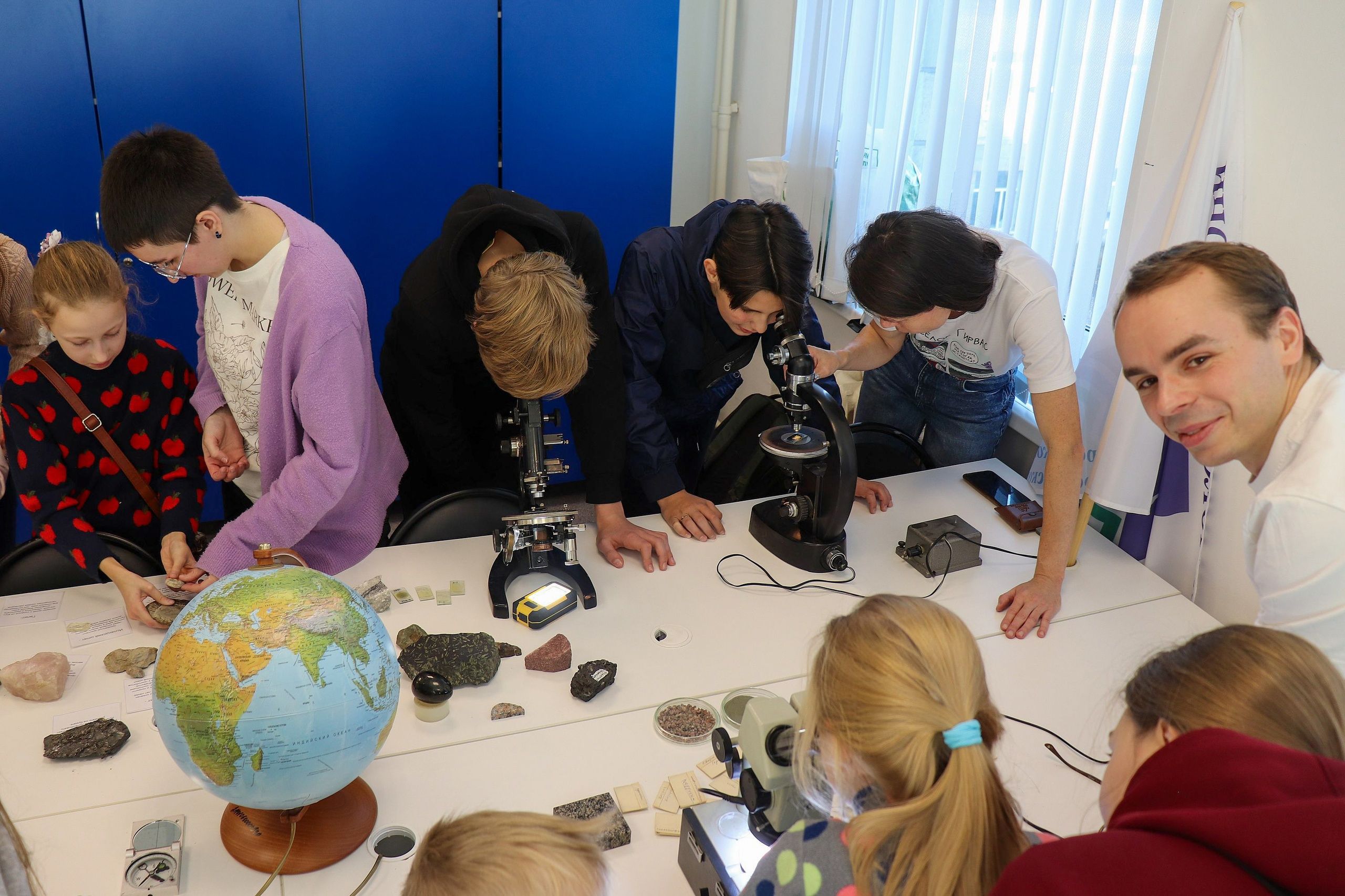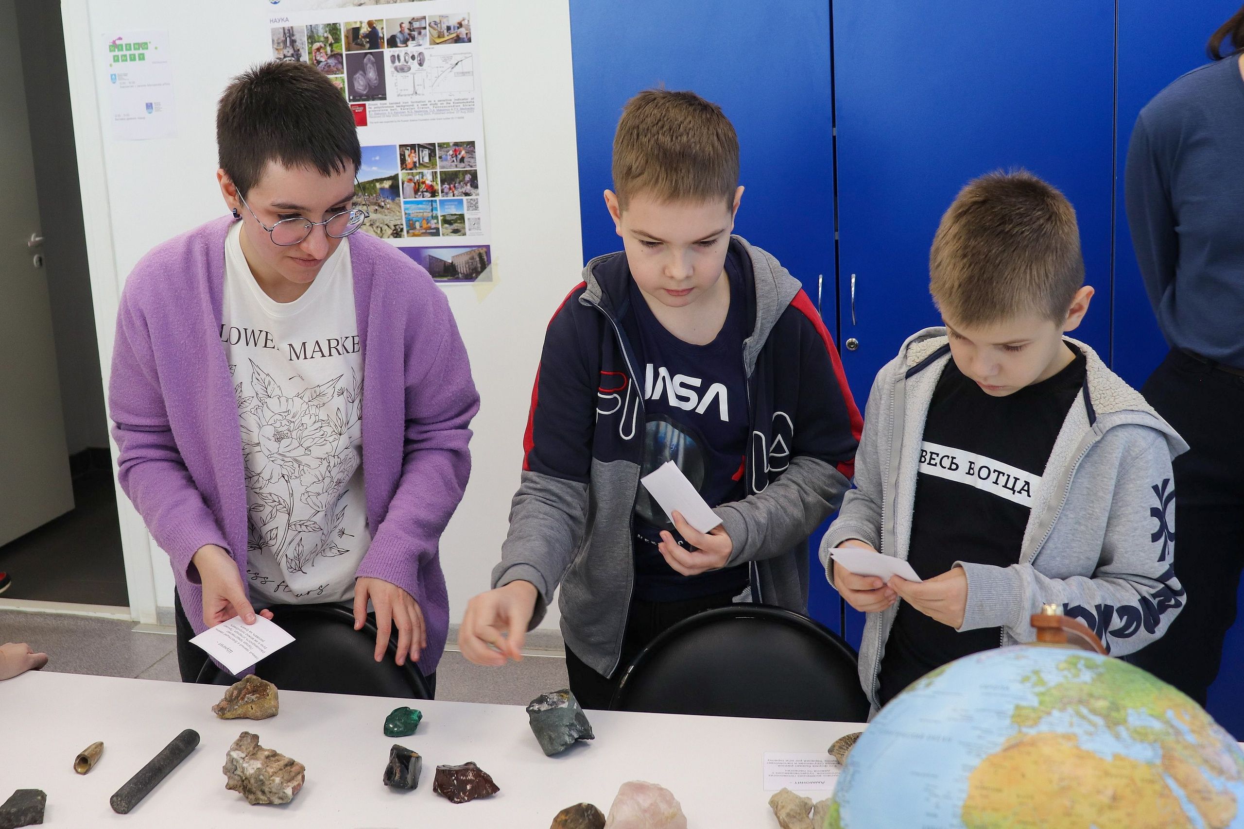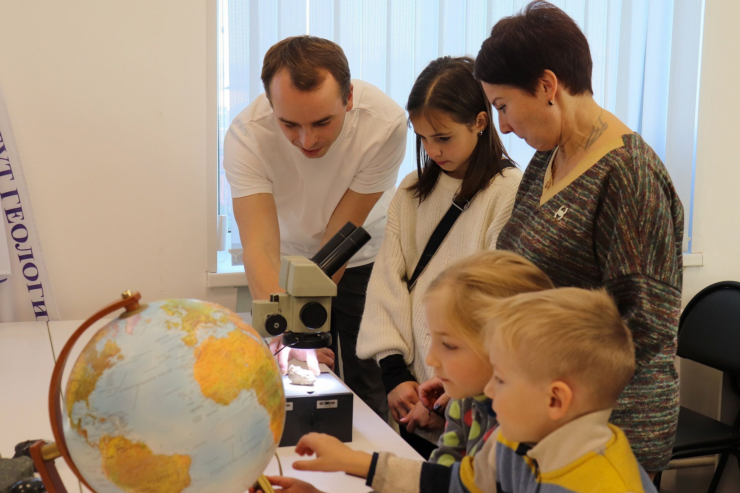 Сотрудники Института геологии КарНЦ РАН рассказали публике о самых древних породах на Земле, распространенных в Карелии. Гости могли увидеть в микроскоп образцы горных пород, узнать, из каких минералов они состоят и в каких условиях формировались. Ученые также поделились профессиональными тонкостями, как они определяют возраст пород, и показывали под бинокуляром минералы–геохронометры – циркон и бадделеит. Ребята также могли познакомиться с ископаемыми остатками животных и растений, которые существовали на Земле задолго до появления динозавров.