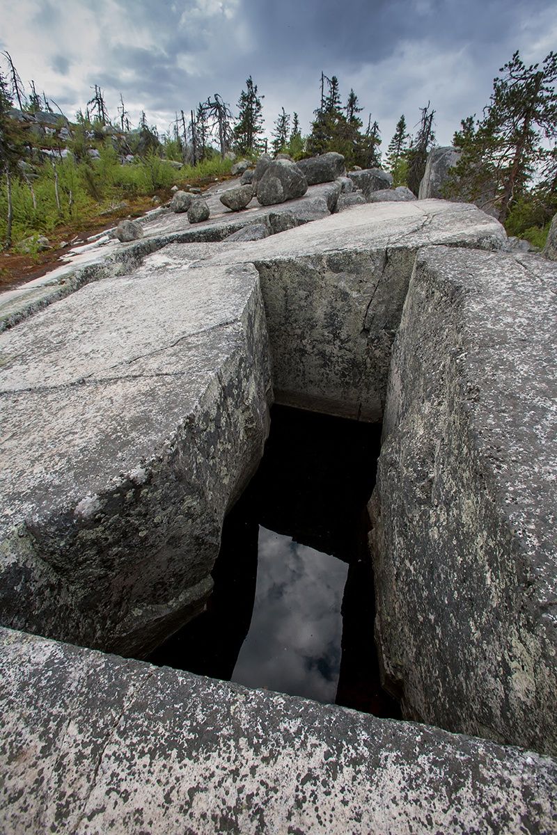 Это одно из самых красивых и необычных озер Карелии. Расположено на территории сразу двух районов – Медвежьегорского и Муезерского. Уникальность озера в том, что оно представляет древний тектонический разлом. Если просто – длинная и глубокая щель на поверхности земли. Длина озера – около шести километров в длину, оно очень узкое. При этом на юге окружено живописными отвесными скалами. Глубина водоема достигает по разным данным – от 100 до 200 метров.