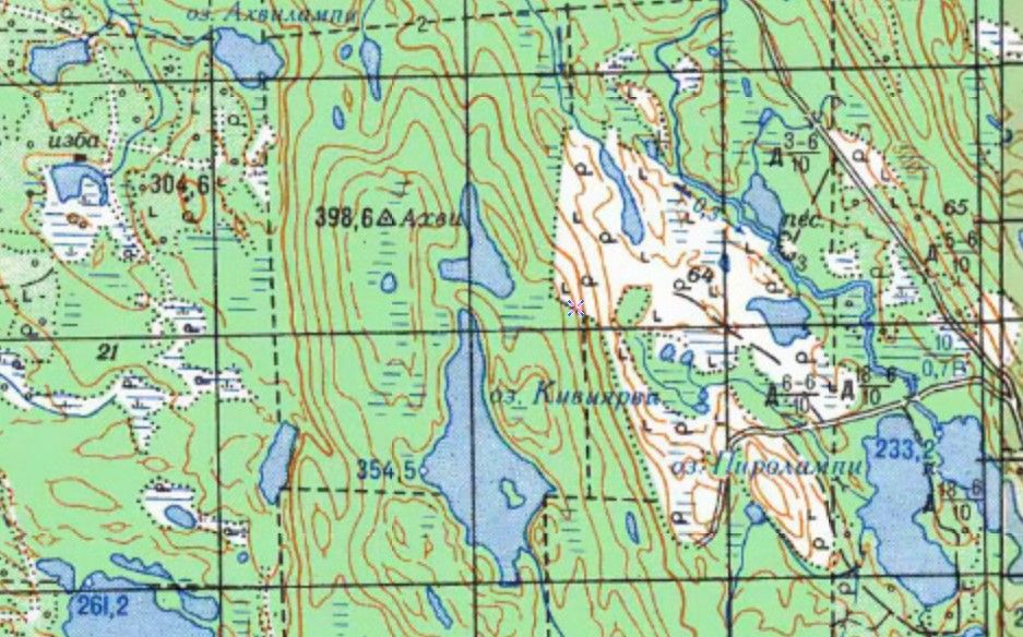 Эта троица самая большая загадка будущего национального парка. В свободном доступе об этих горах информации почти нет. Не найти их и на картах в Интернете. Их просто нет на онлайн-картах. Поэтому нам пришлось приложить усилия, чтобы найти отсканированные для сети Интернет старые бумажные карты. Там эти вершины нашлись где-то между Суккозером и Пенингой – на северо-западе от Воттоваары.