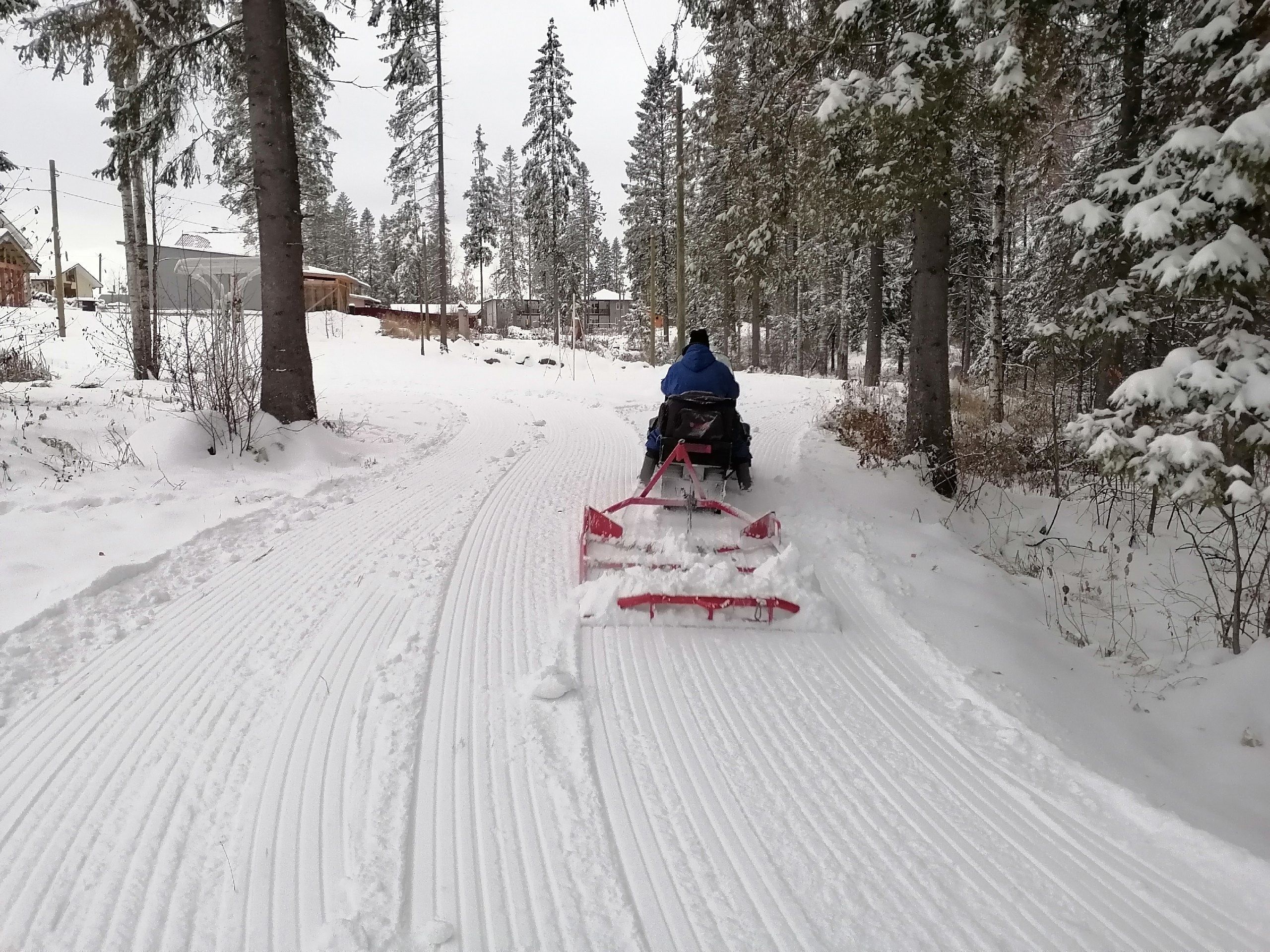 В парке «ПаркВилль», о котором наш сайт не раз рассказывал, местные жители подготовили с помощью снегоходов лыжную трассу.