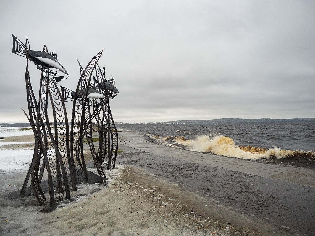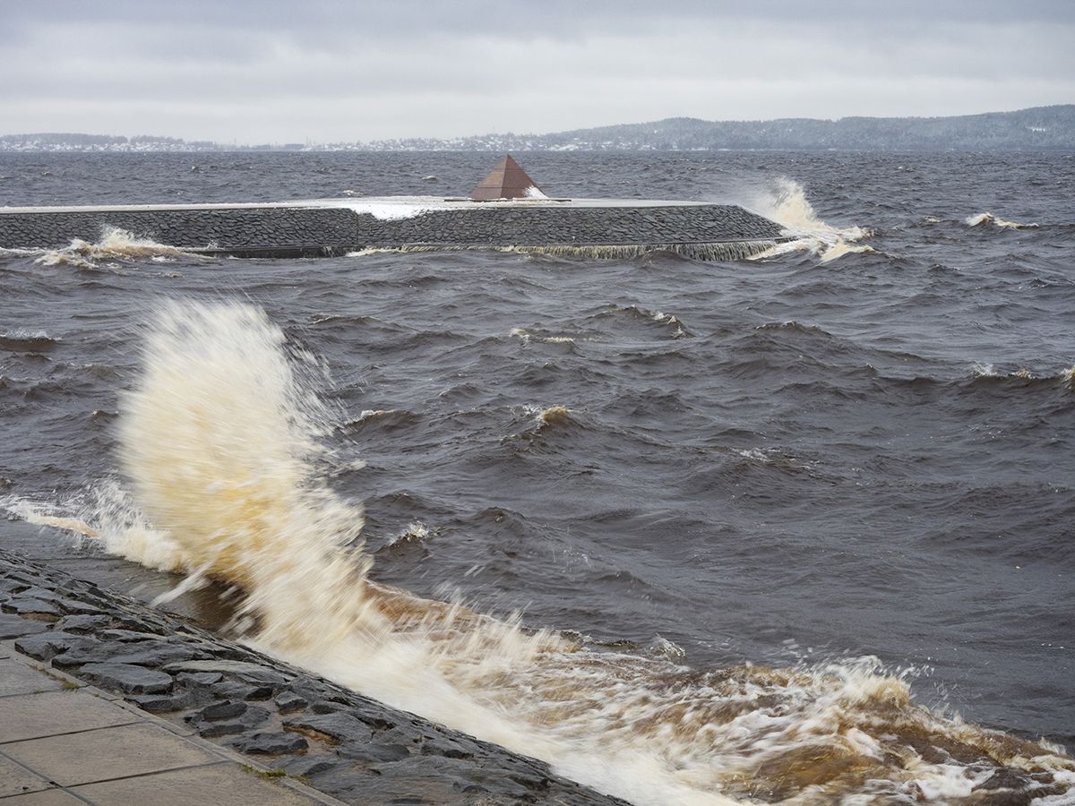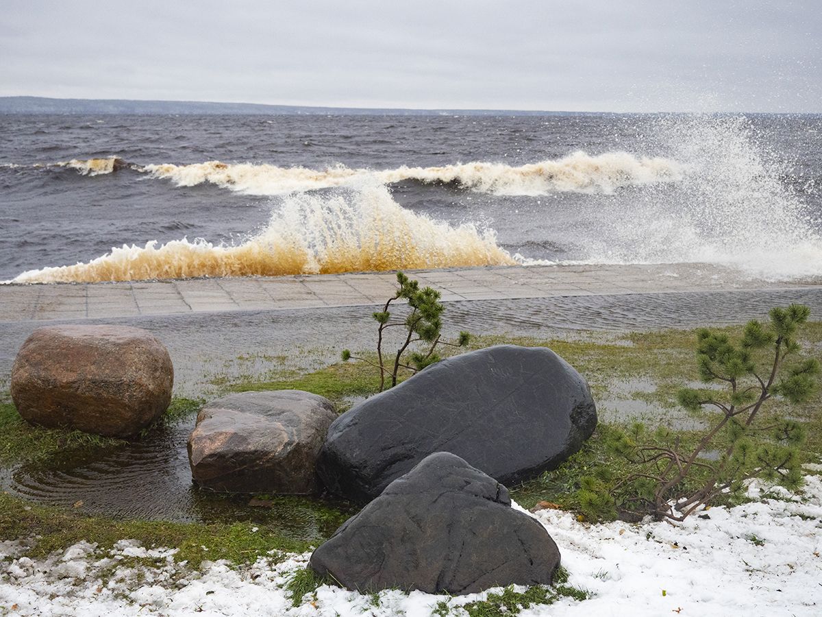 Вчера природа тоже подготовила жителям и гостям карельской столицы не самые приятные сюрпризы – мокрый снег и сильный ветер не располагали к прогулкам. Онежское озеро штормило, поднялись высокие волны, но обошлось без разрушений.