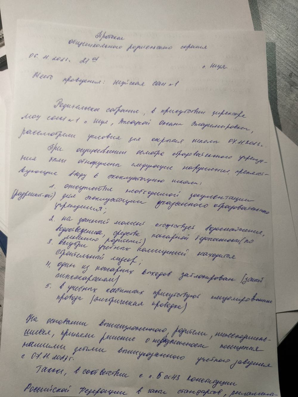 Сегодня после капитального ремонта открыли школу в поселке Шуя. Родители еще накануне побывали в здании и выявили недочеты. Издание «Губернiя Daily» выложило фото составленного протокола.