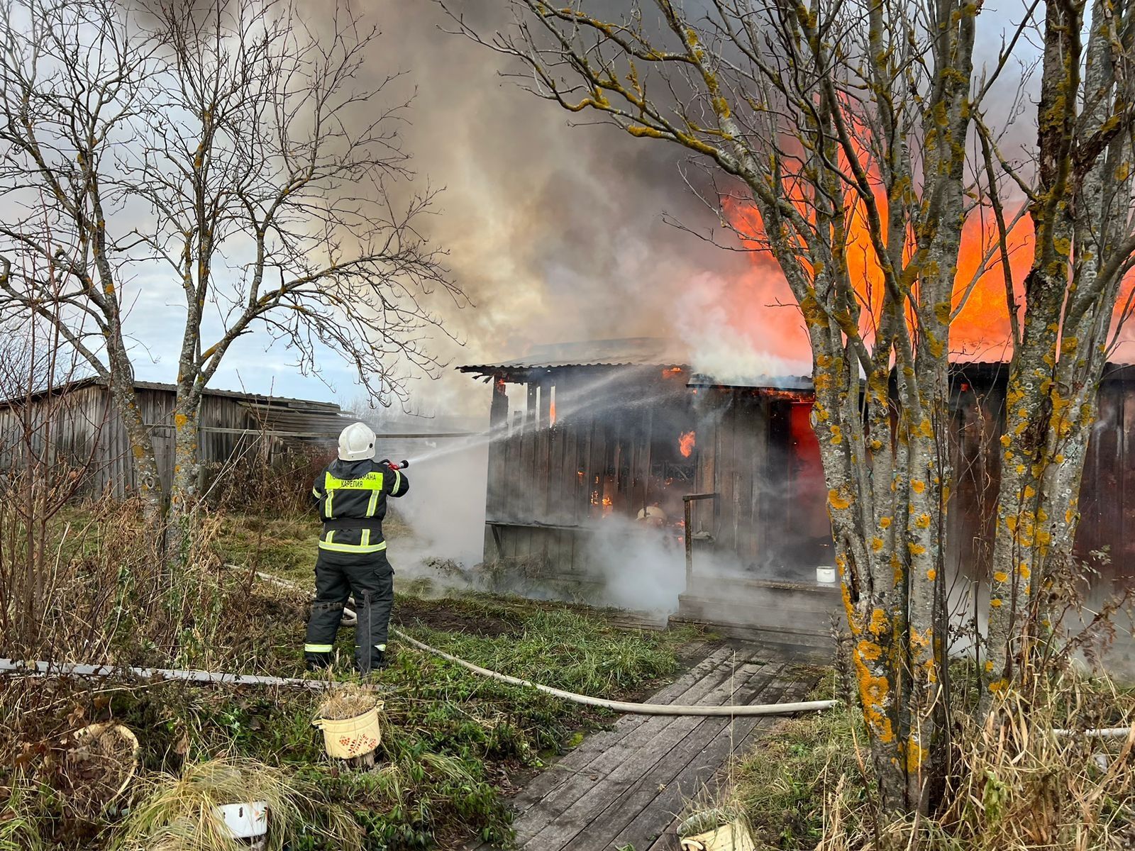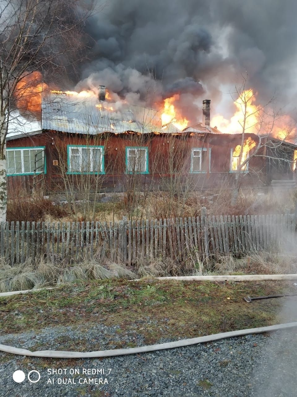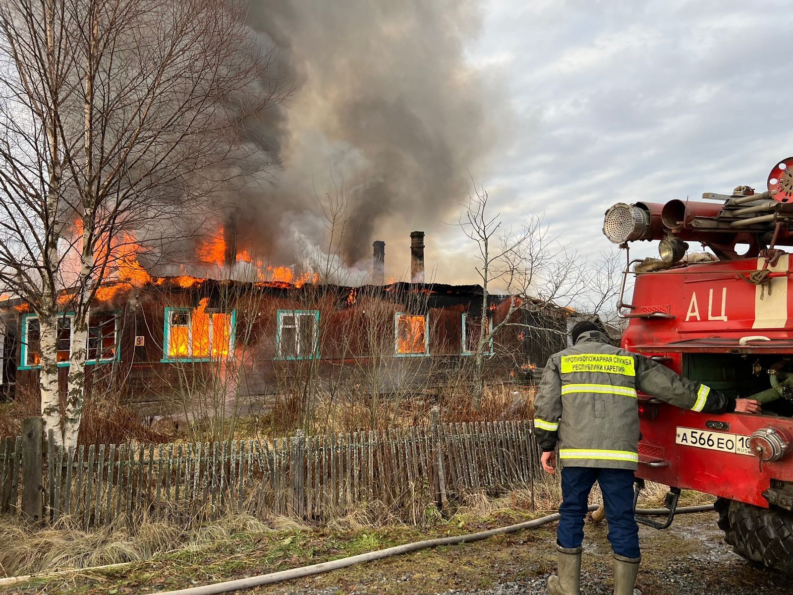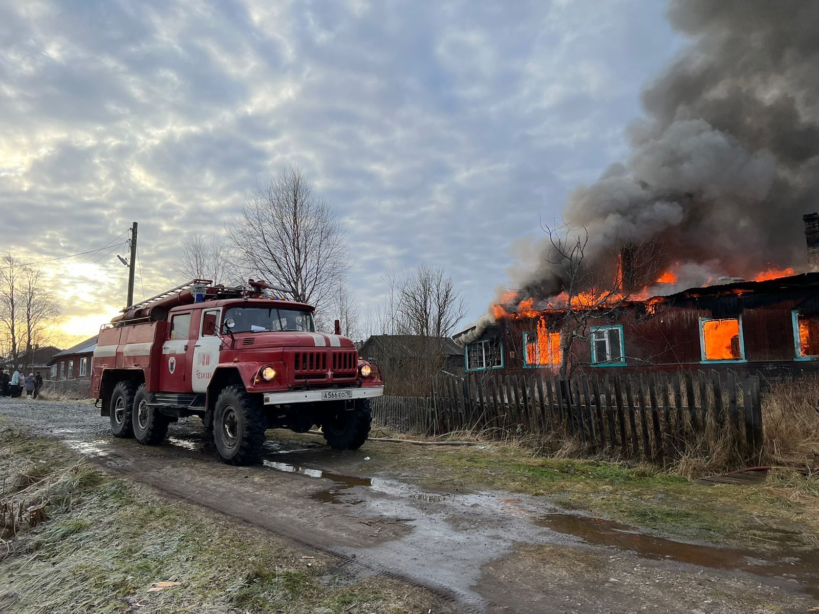Сегодня утром вспыхнул двухквартирный жилой дом на улице Детской в поселке Пяльма Пудожского района.