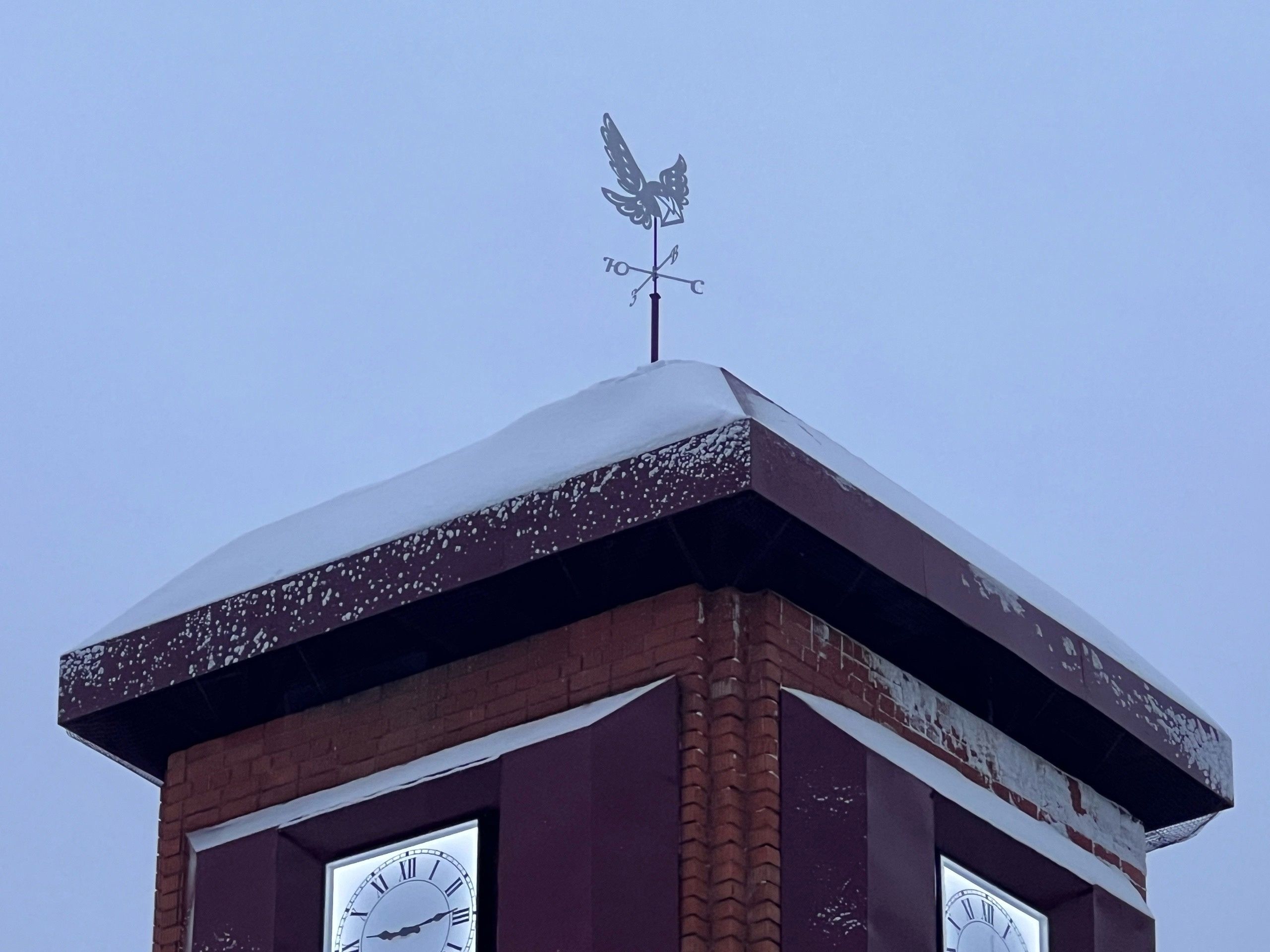 За свой счет компания отремонтировала конструкцию, покрасила кровлю башни, установила три новых часовых механизма. Ну а саму башню теперь венчает флюгер «Почтовый голубь».
