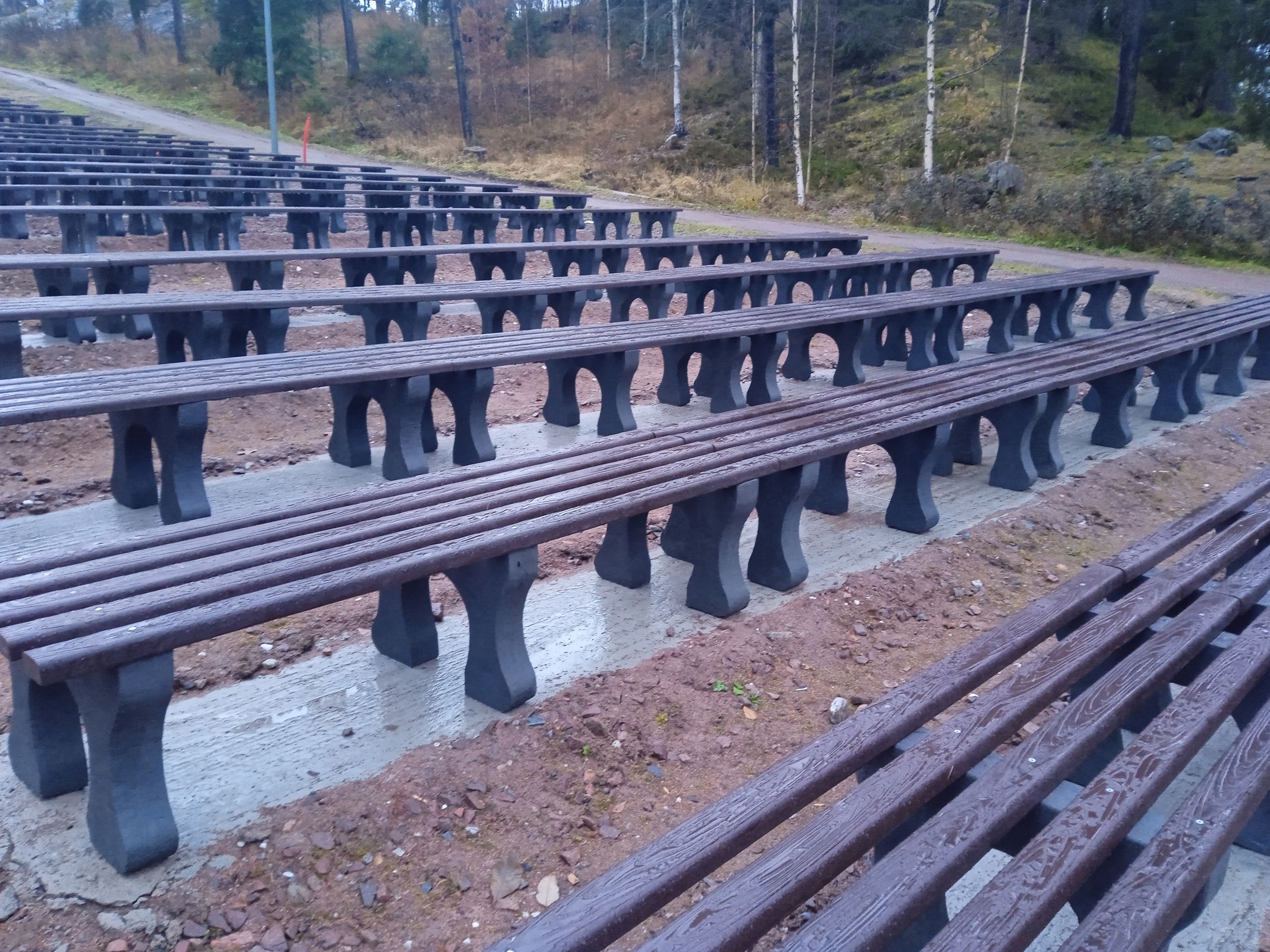 В парке Ваккосалми завершили установку новых скамеек для зрителей, произвели монтаж опор для фонарей уличного освещения и оборудования для подсветки горы. На набережной продолжаются работы по укладке плитки, а также подготовлены к установке новые арт объекты и конструкции для городской навигации.