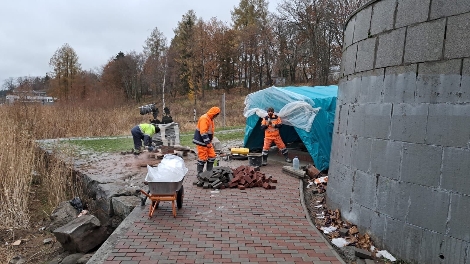 Несмотря на похолодание и сокращение светового дня, строительные работы в парке не останавливаются, рассказали в официальном паблике города.