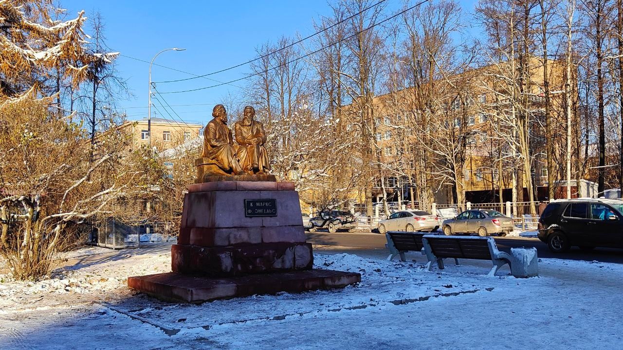 Мы рассказывали, что у нашего памятника есть три брата-близнеца. На Мытищинском заводе художественного литья более 60 лет назад был изготовлен не один, а сразу четыре одинаковых памятника Марксу и Энгельсу работы Ефима Белостоцкого. Точно такие же «светочи коммунизма» были установлены в городе Октябрьский в Башкортостане, а также в городах Фрунзе (ныне Бишкек, Киргизия) и Чимкенте (ныне Шимкент, Казахстан). А единственное отличие петрозаводского памятника – основание из шокшинского малинового кварцита.