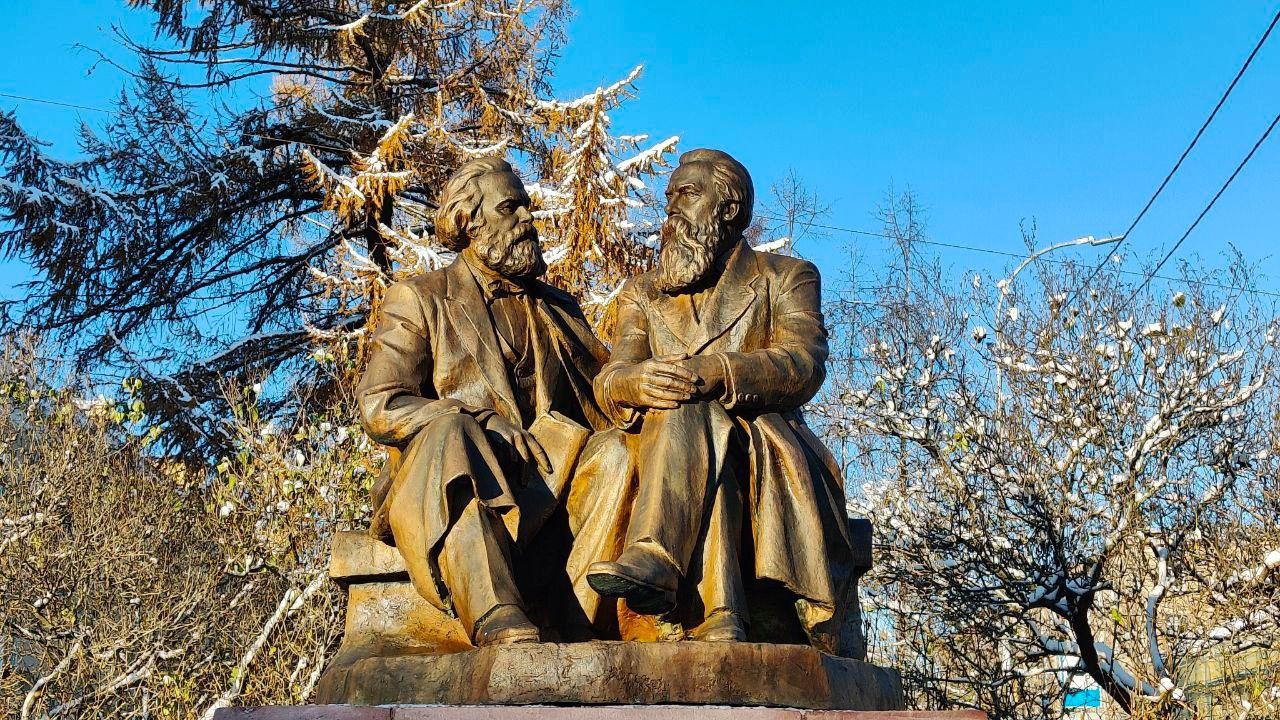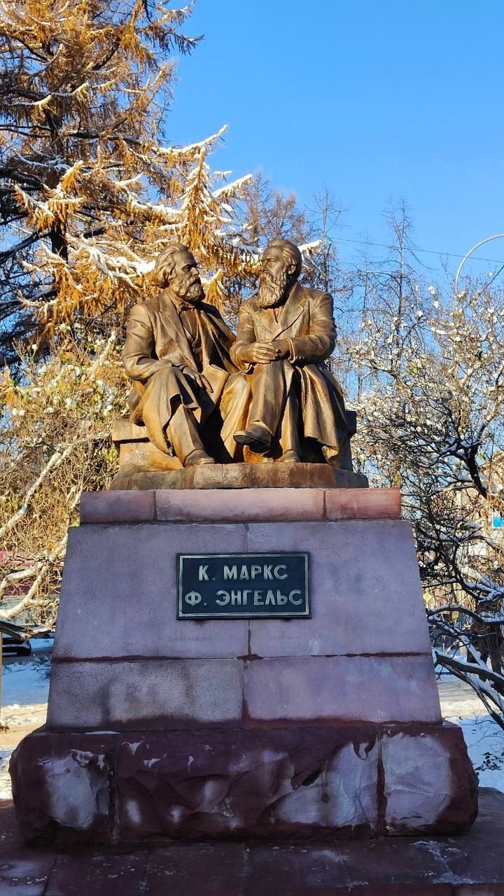 Мы уже рассказывали, что «Светочи коммунизма» вернулись на свое место на постаменте из малинового кварцита на улице Куйбышева. Фигуры Карла Маркса и Фридриха Энгельса привели в порядок: почистили, нанесли на него патину и покрыли защитным восковым слоем.