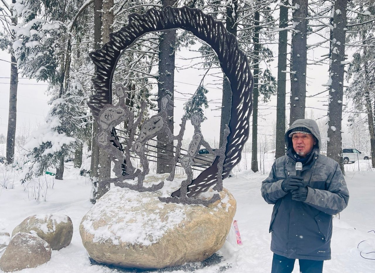Я сам родом из Беломорска, и созданный мной арт-объект навеян сценами беломорских петроглифов. Круг, в котором находятся древние лыжники, символизирует солнце, а весь проект скульптор назвал «взглядом из прошлого», — пояснил Александр Ким.