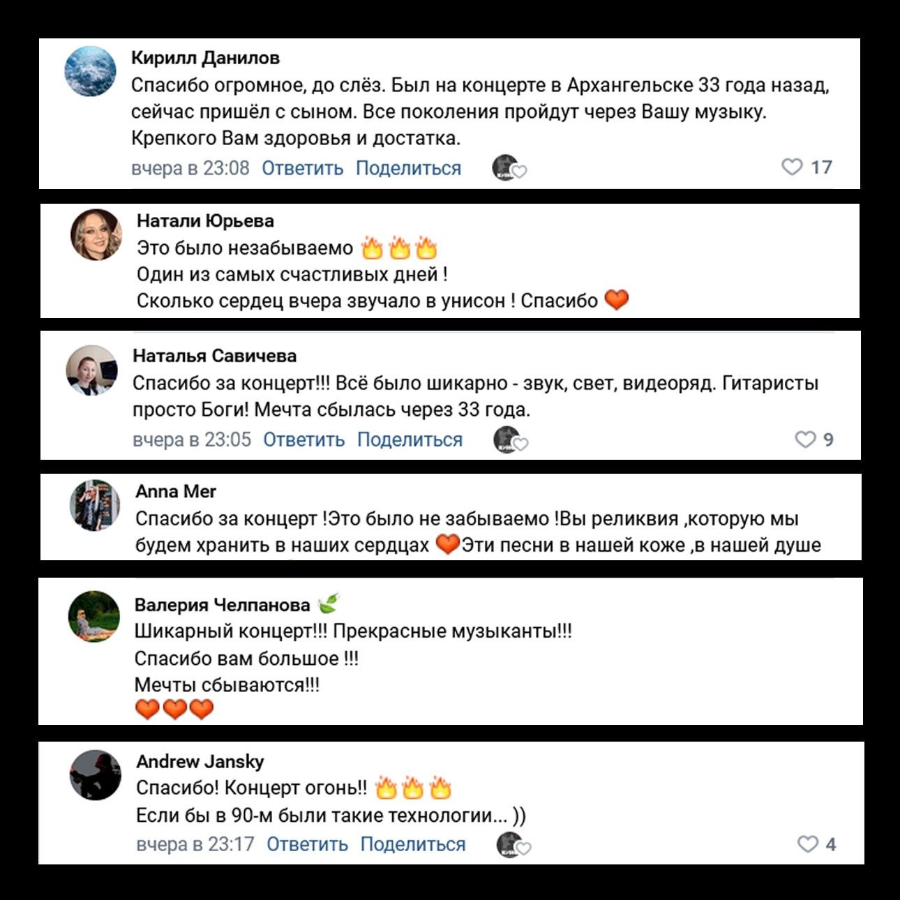 Жители Архангельска делятся впечатлениями от концерта группы «Кино» (6+).