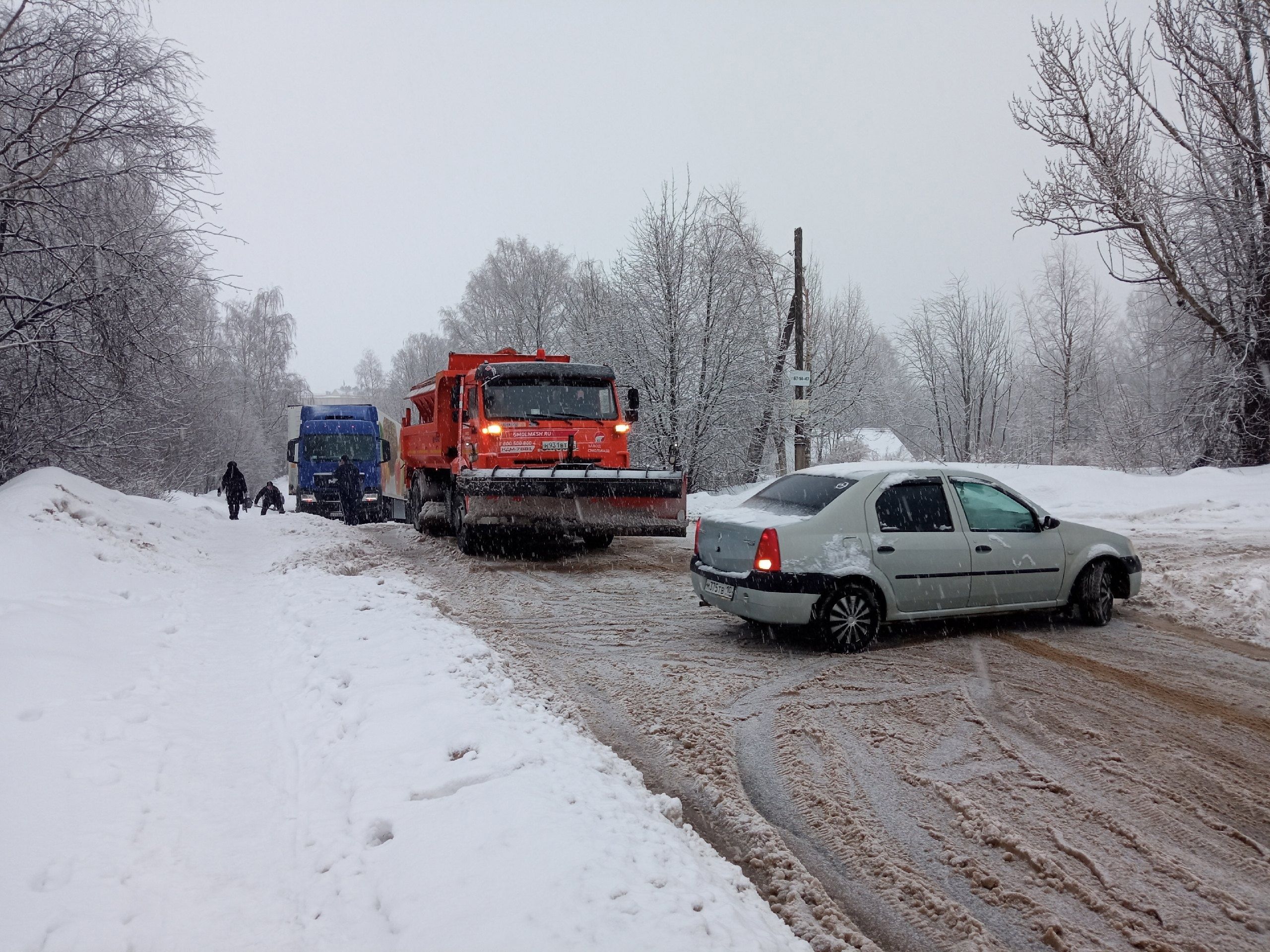 По словам горожанина, транспортное средство в непростых погодных условиях не смогло подняться в гору и забуксовало. Попавший в беду грузовик снял петрозаводский фотограф Игорь Подгорный. На снимках с места происшествия видно, что работники пытаются лопатами вызволить большегруз из снежного плена.