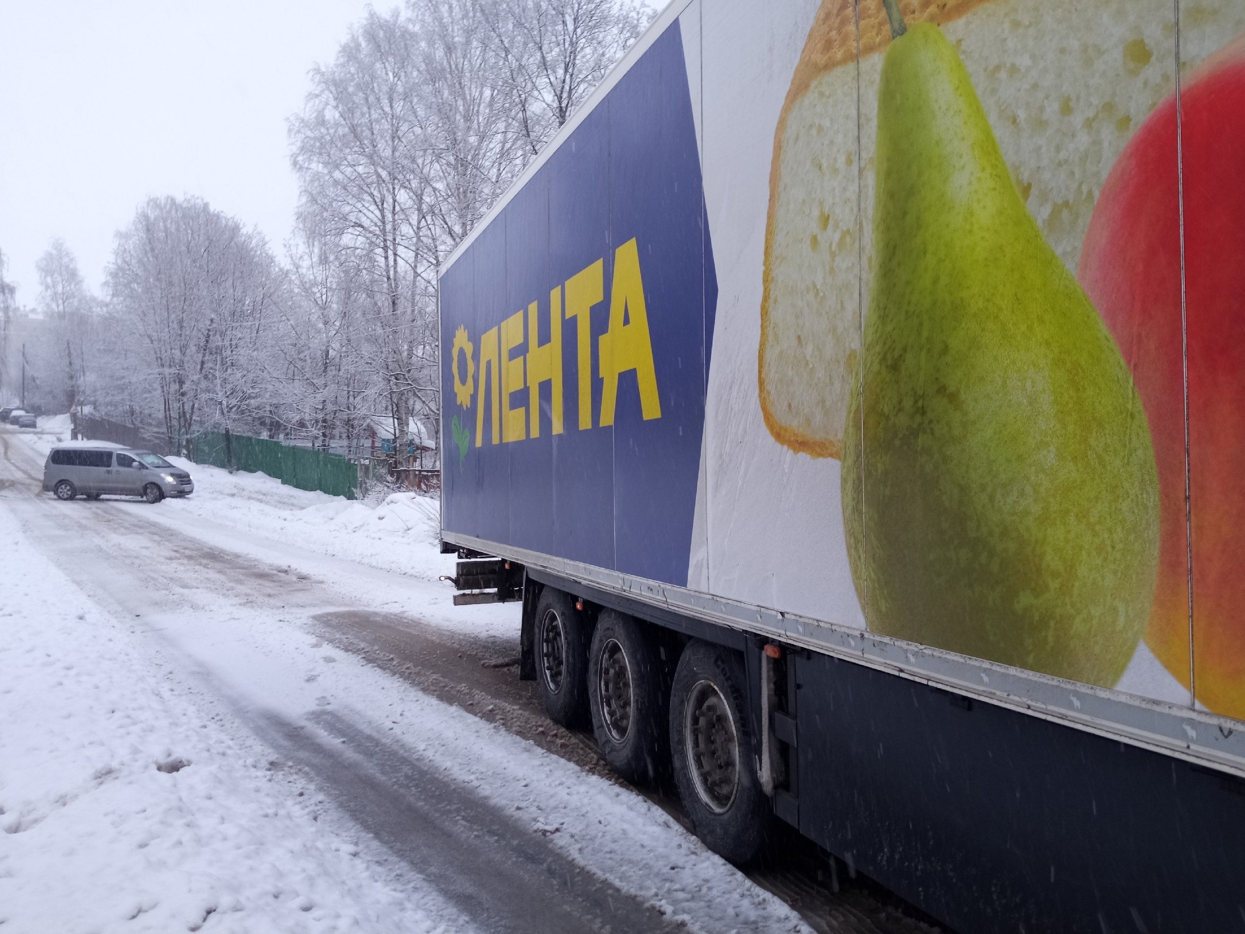 Сегодня днем, 24 декабря, в Петрозаводске произошел дорожный инцидент с участием грузовика торговой сети «Лента». О случившемся рассказал очевидец.