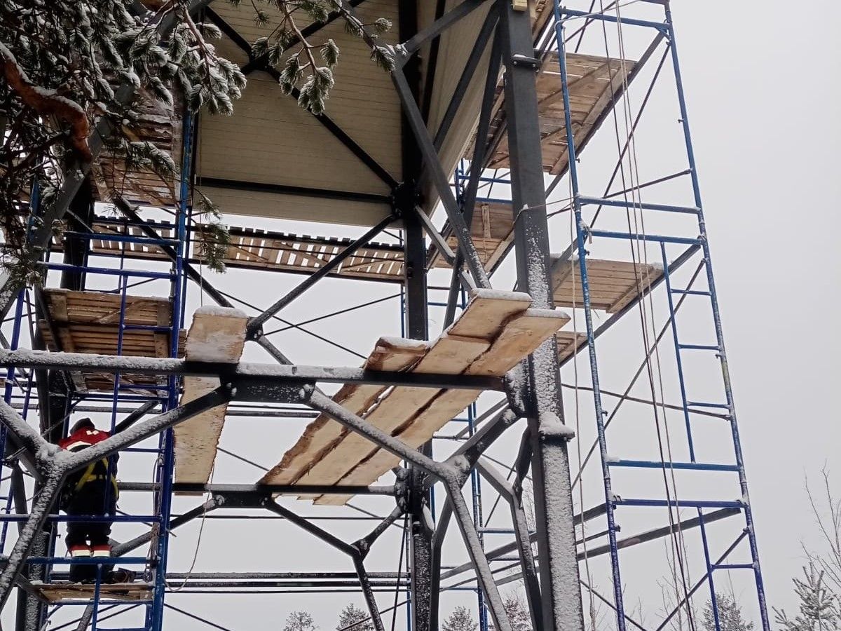 Продолжается возведение смотровой башни в парке Ваккосалми города Сортавала. Работы ведутся в рамках реализации проекта «Туристический код центра города».