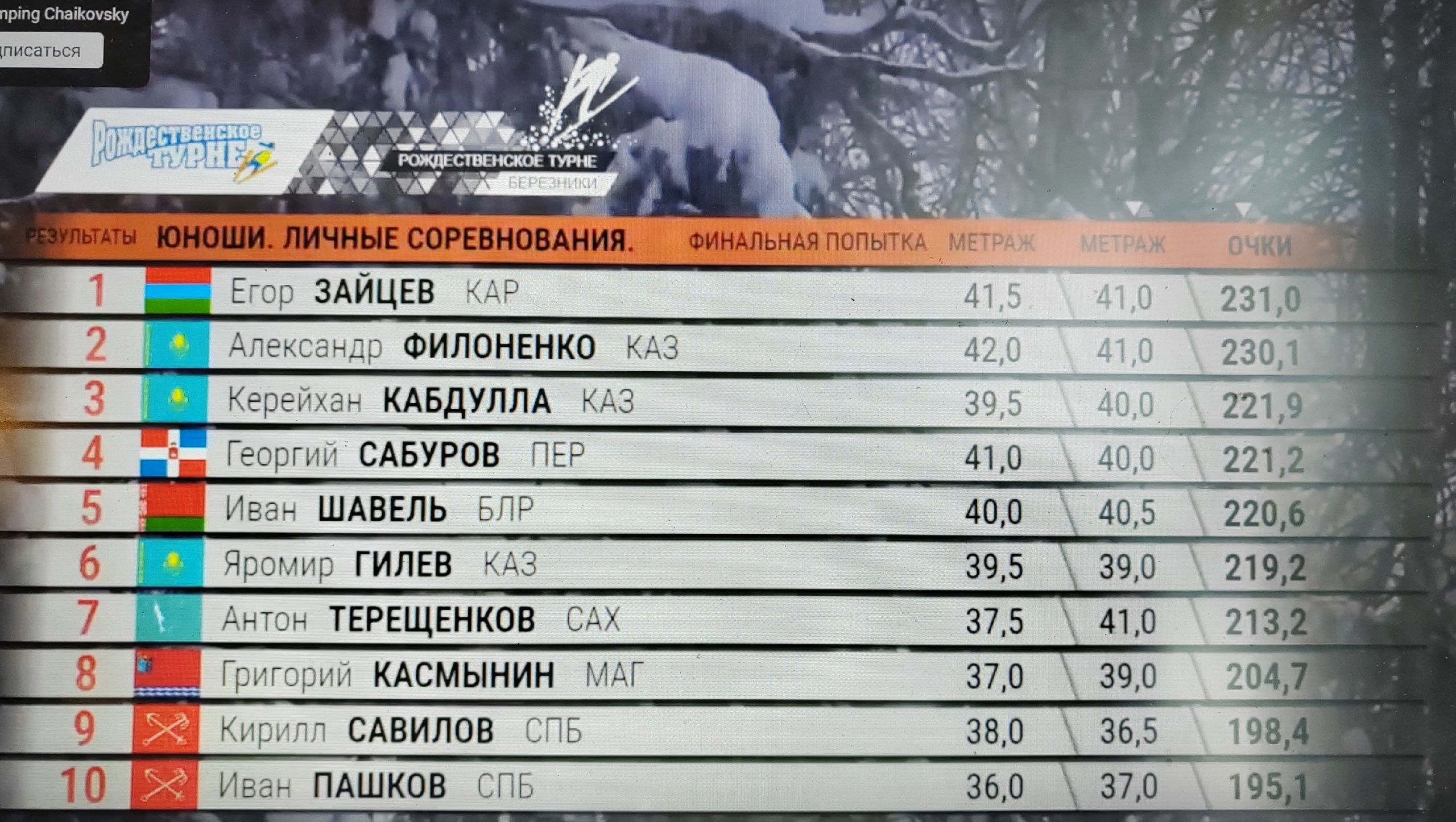 По итогам первого этапа, который проходил в Перми, Егор Зайцев занял 7 место. Также в соревнованиях принимает участие Степан Аношин. По итогам двух туров он занял 10 и 17 места. Третий тур проходит в Чайковском 6 и 7 января.