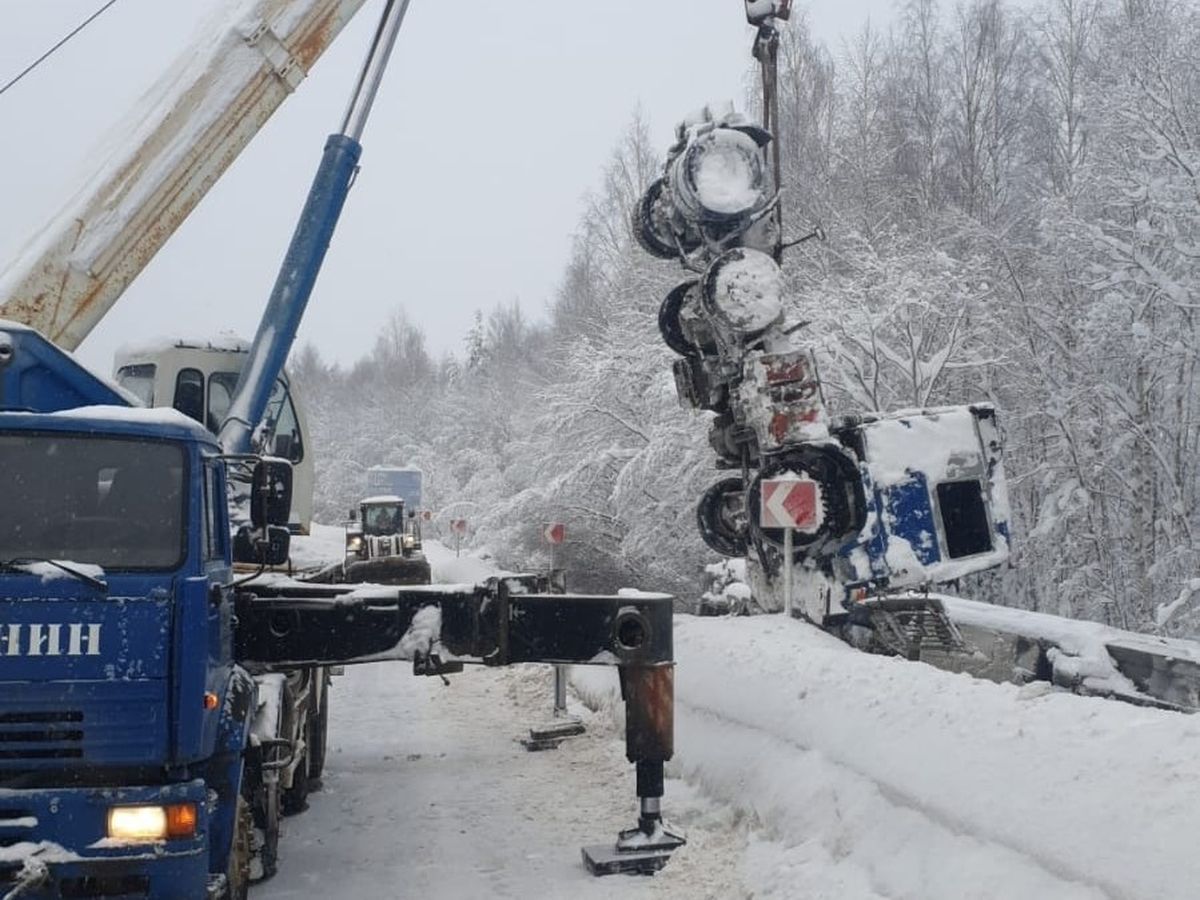 Эвакуация автомобиля — с помощью спецтехники — дело затратное. Возможно, именно с этим связано то, что фуру вытащили лишь сегодня, спустя неделю после аварии.
