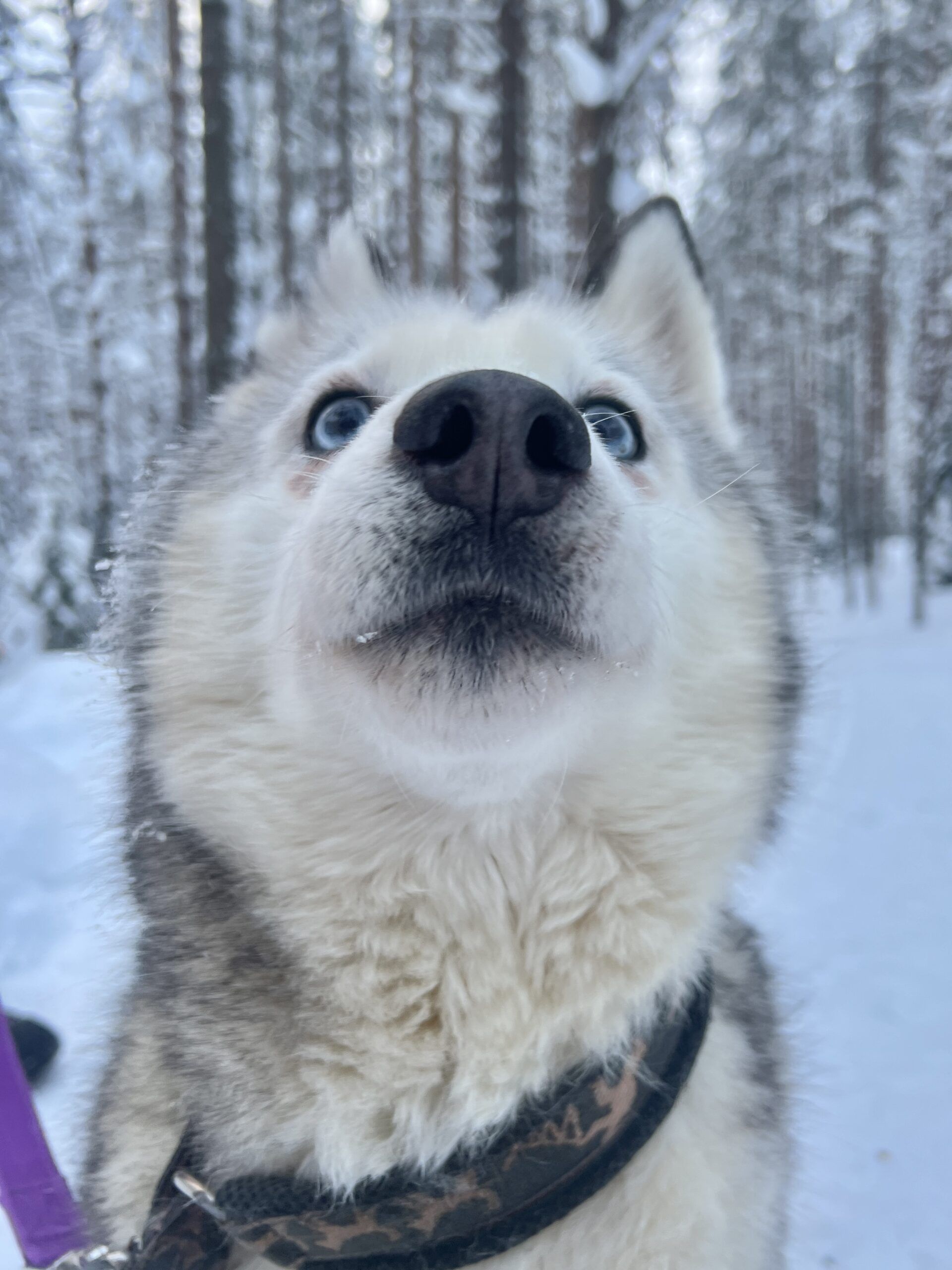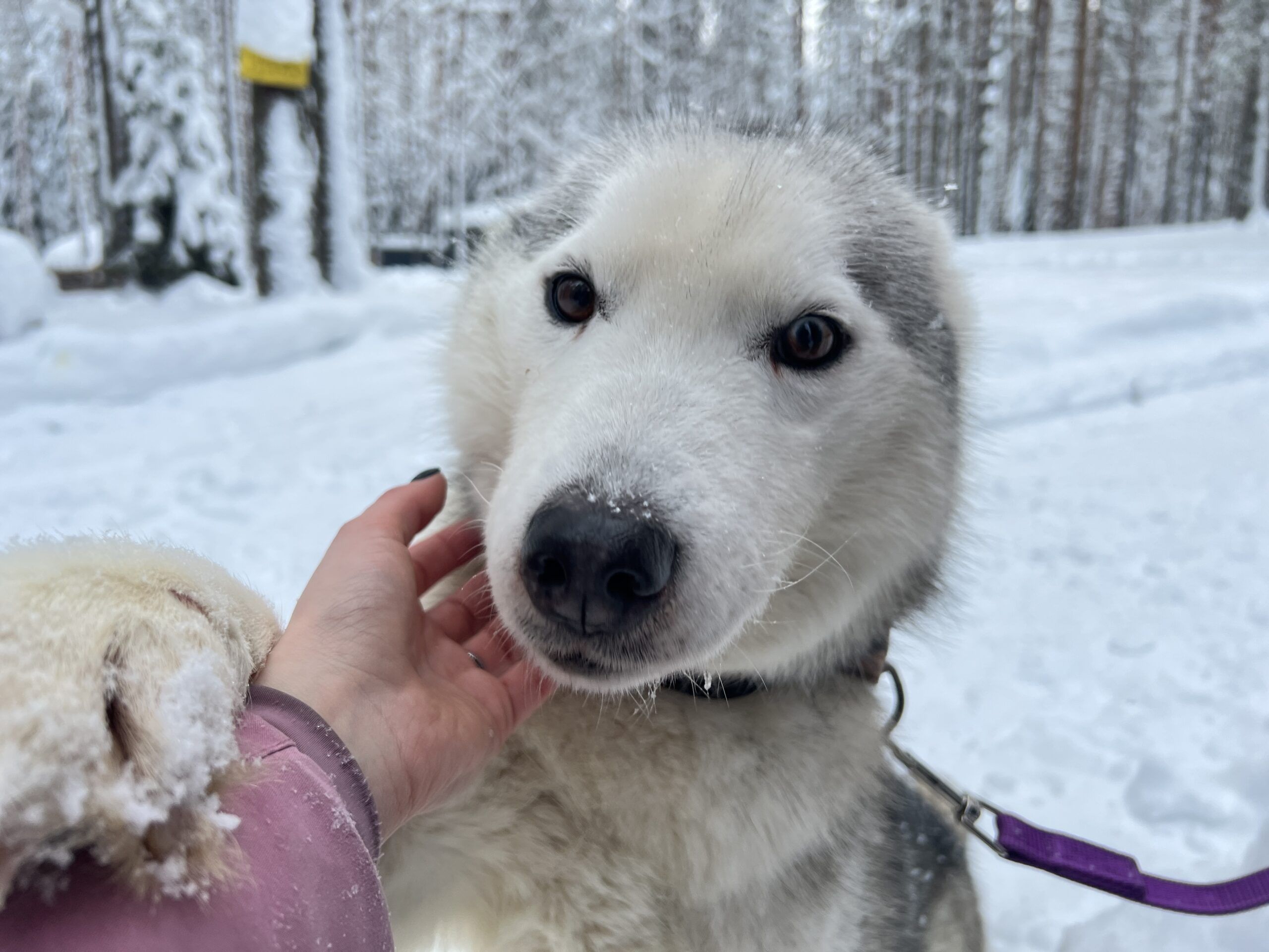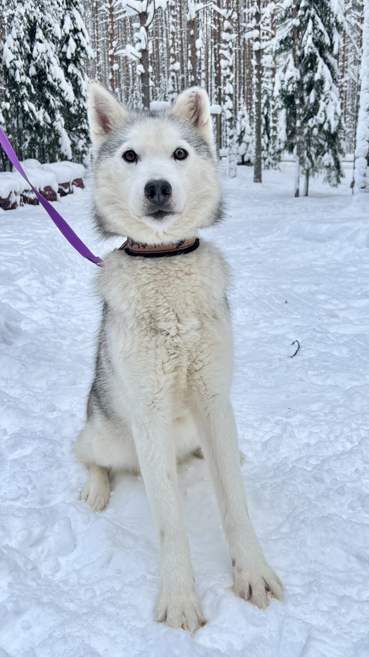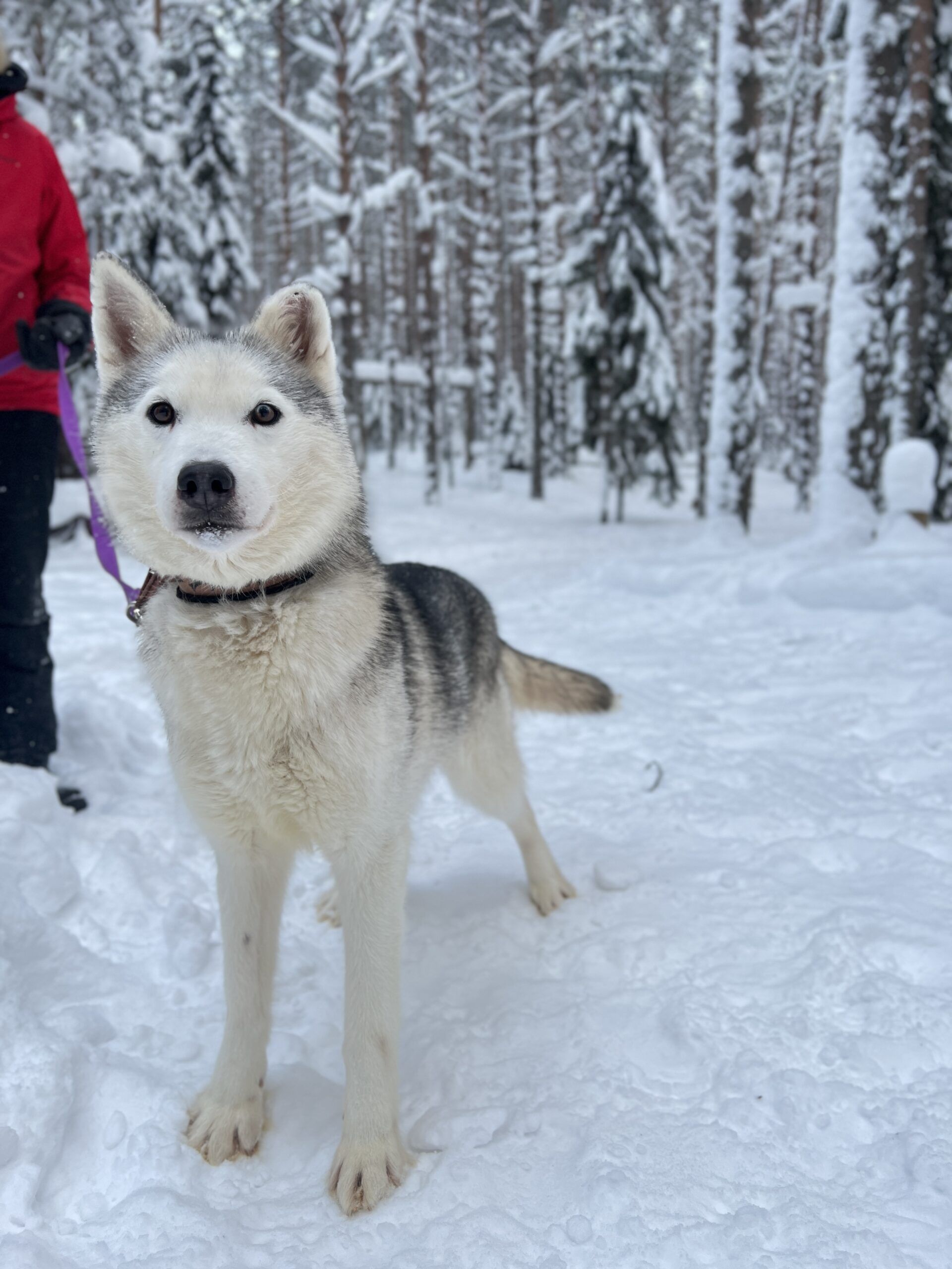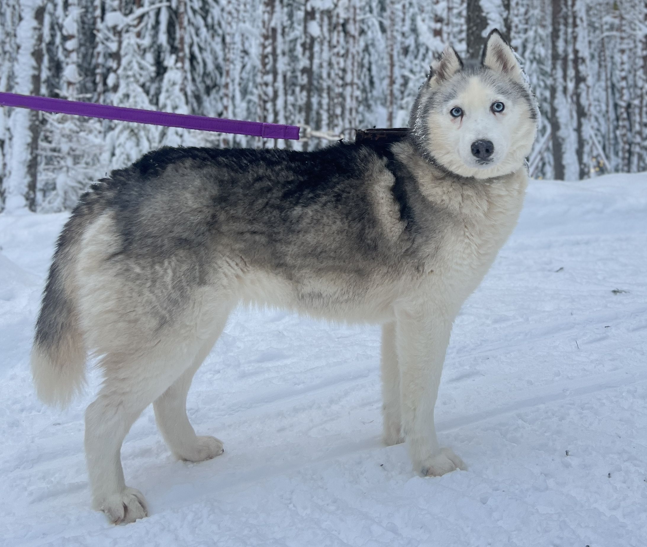Талви, девочка, 11 лет, стерилизована. Веселая, озорная, бегала лидером упряжки. Сестра Луми. Очень любит детей и внимание. С другими собаками адекватна и выбирает друзей сама.