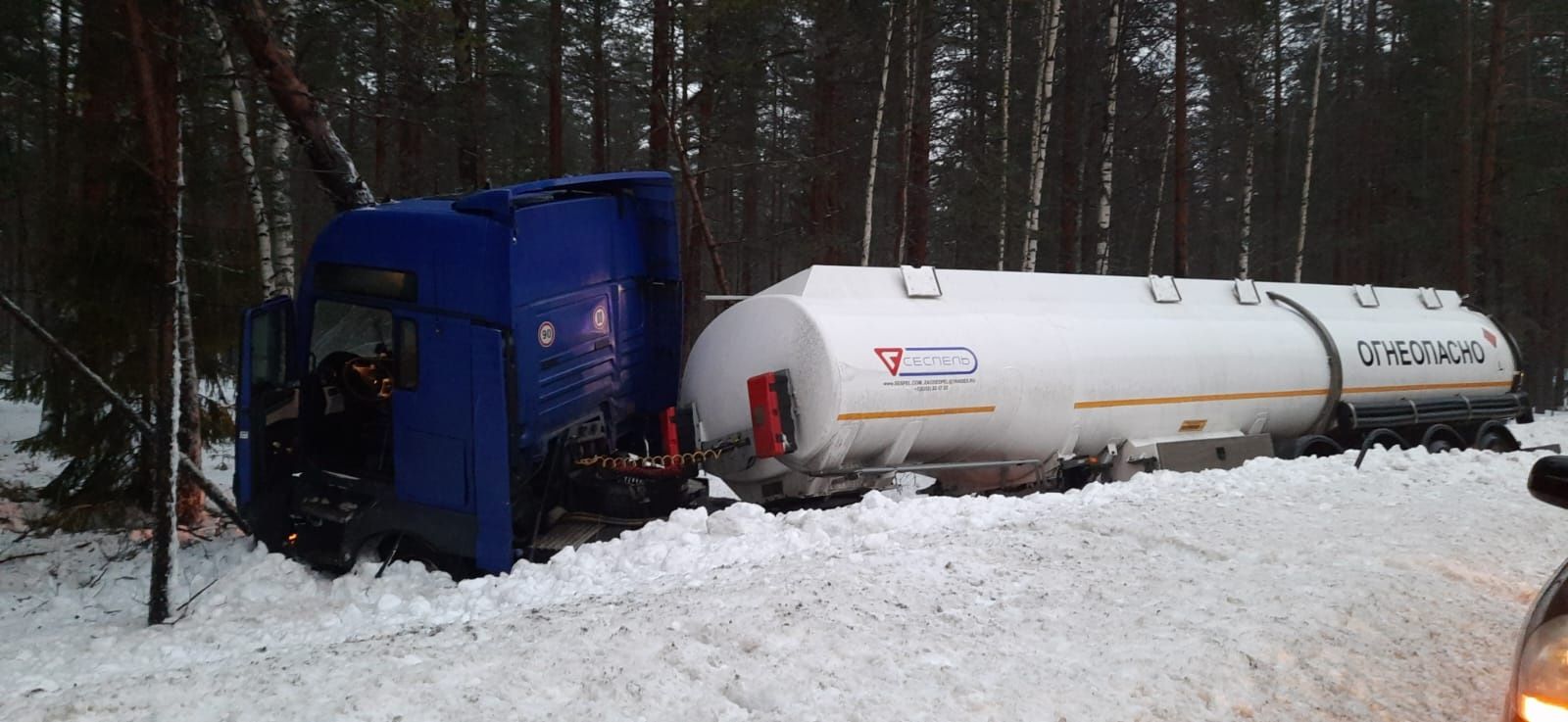 24 января в 07 часов 53 минуты поступило сообщение о том, что на автодороге «Р-21» «КОЛА» 260 км произошло дорожно-транспортное происшествие: съезд грузового автомобиля в кювет, — говорится в сообщении.