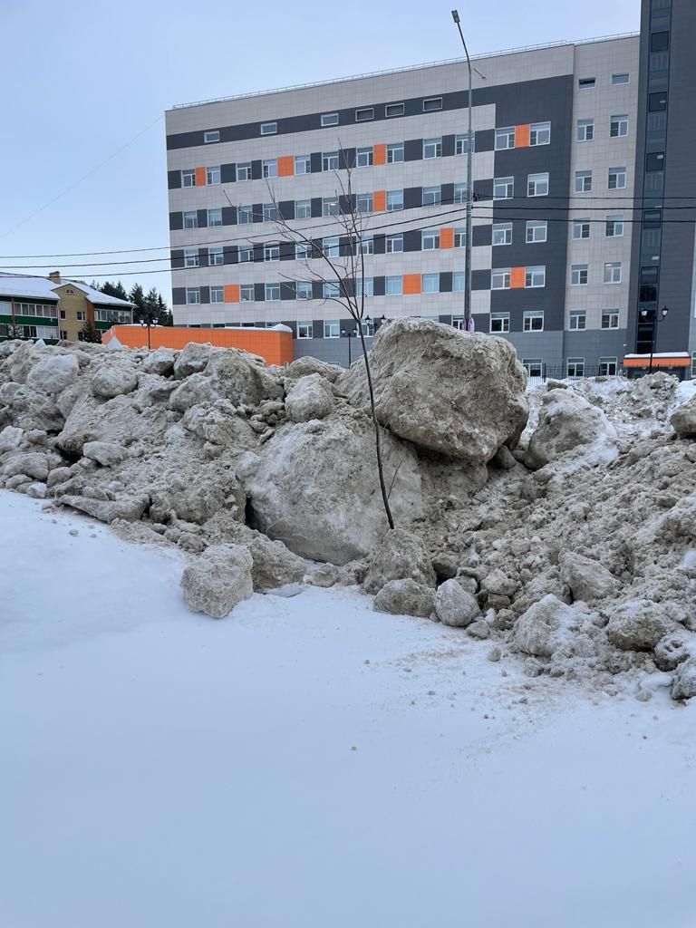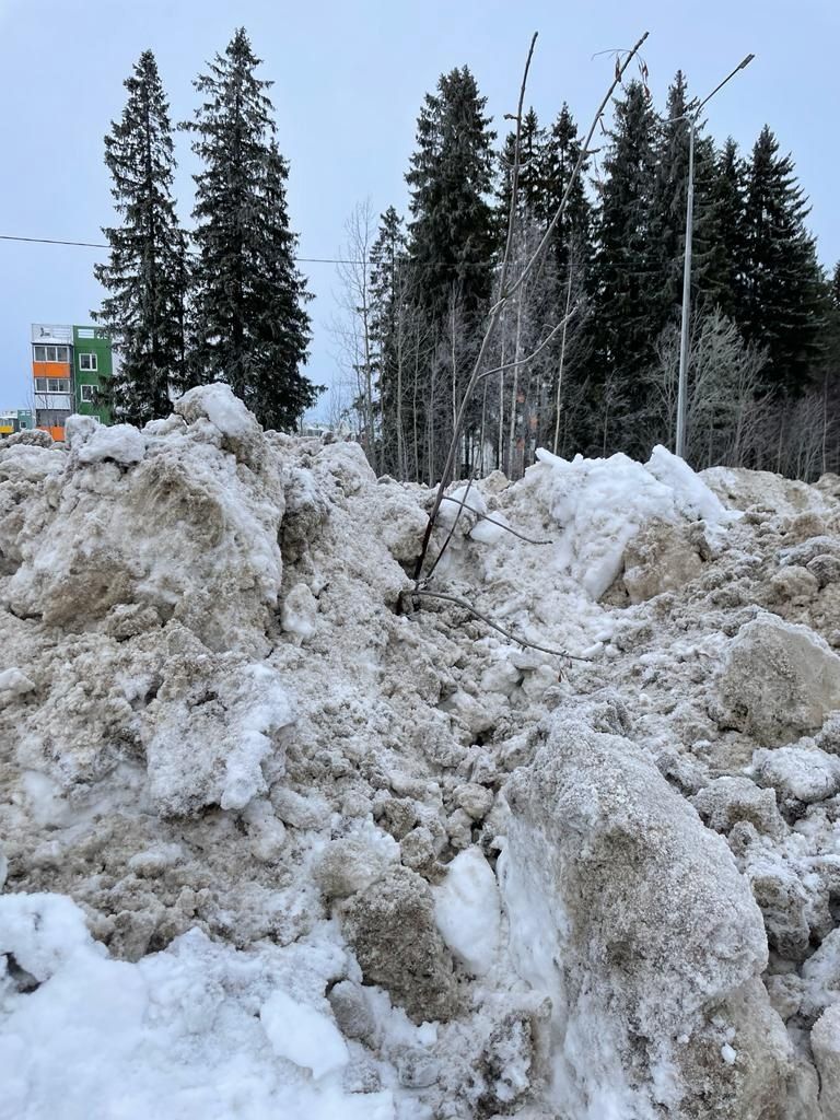 На днях в ходе уборки улицы дорожная техника фактически уничтожила молодые деревья. Читатели прислали фотографии, как сейчас выглядит аллея. На снимках видно, что техника буквально завалила снегом и льдом все посадки. Некоторые деревья очевидно сломаны. Снег с дороги вываливали прямо на них.